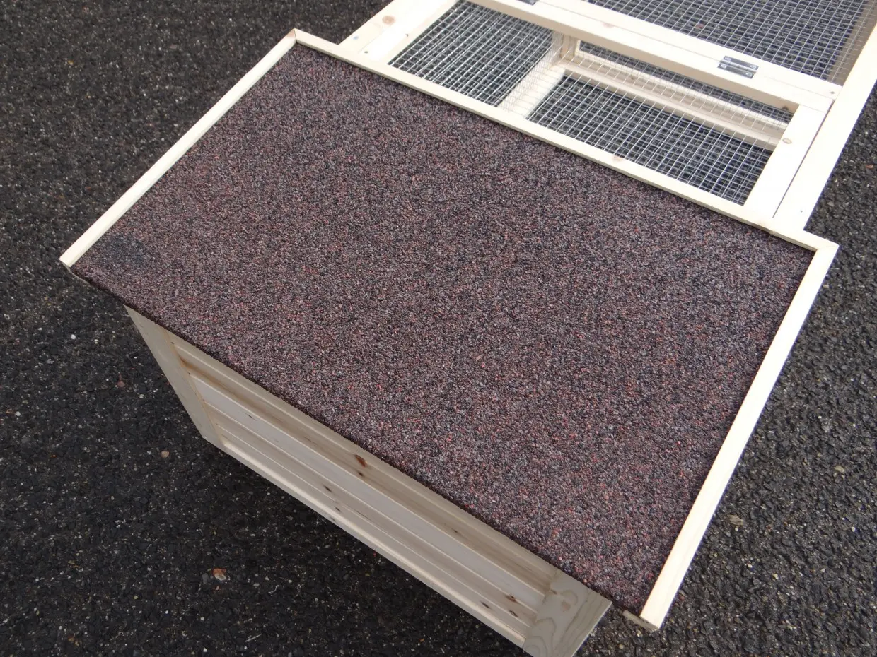 - Het hok heeft een dak met dakleer