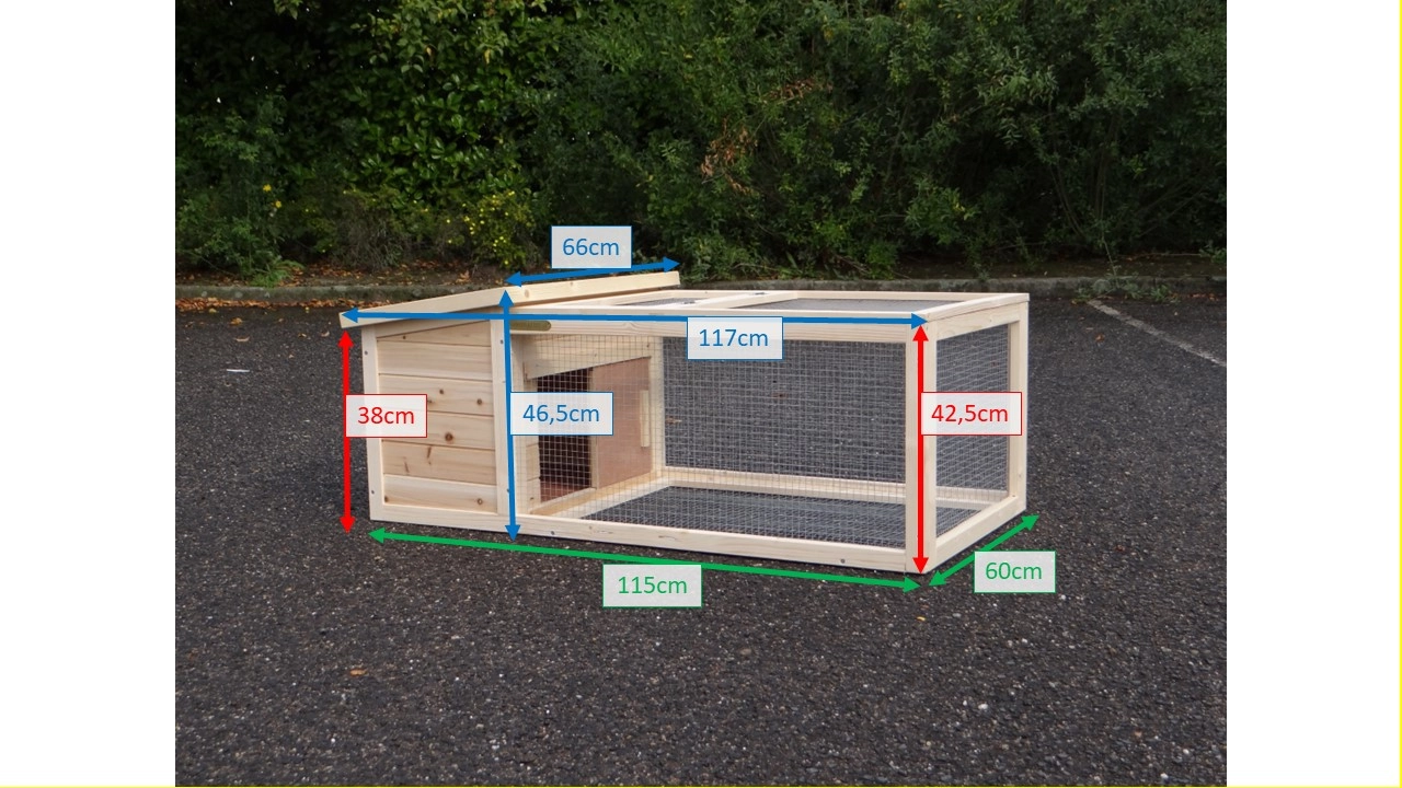- Konijnenhok met de volgende kenmerken: