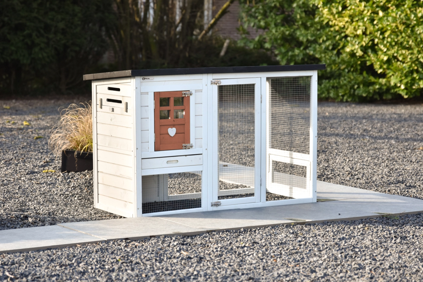 - Het hok is voorzien van een kunststof dak
