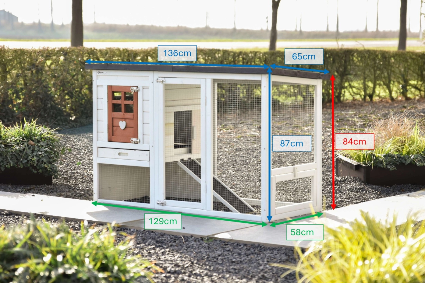 - Konijnenhok met de volgende kenmerken: