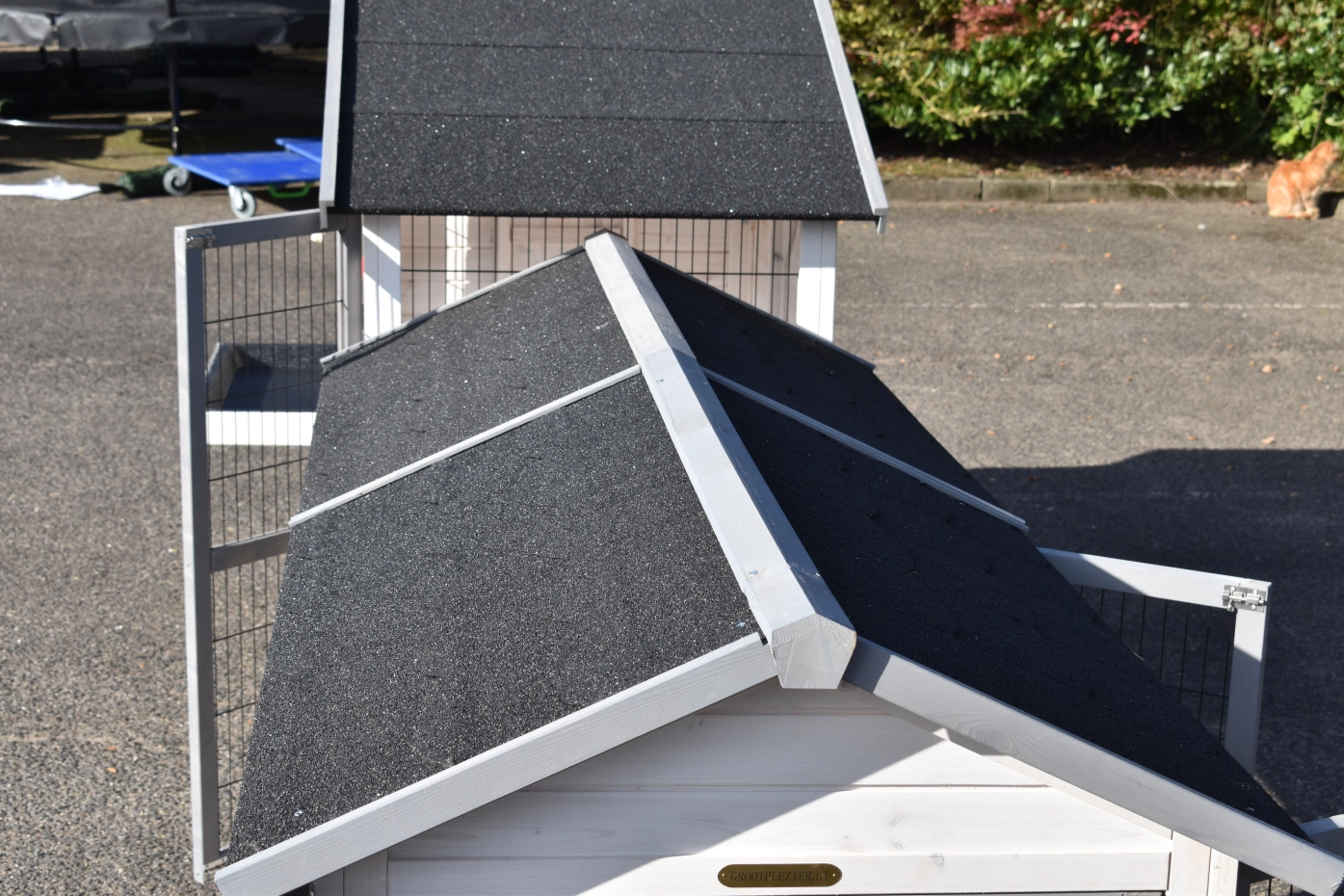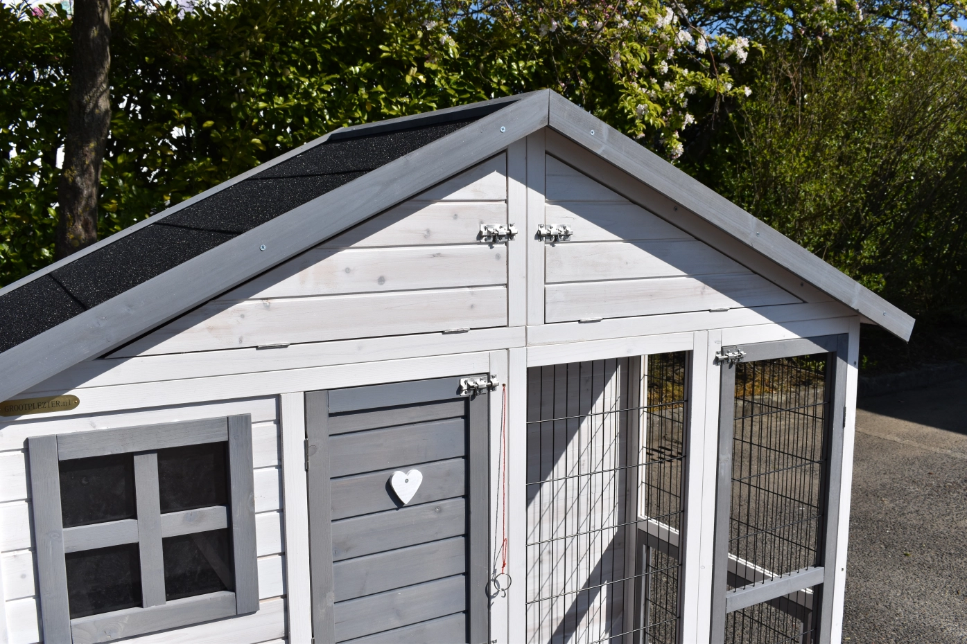 - Wanneer het hok niet op een beschutte plaats staat, dan adviseren wij om het te verankeren