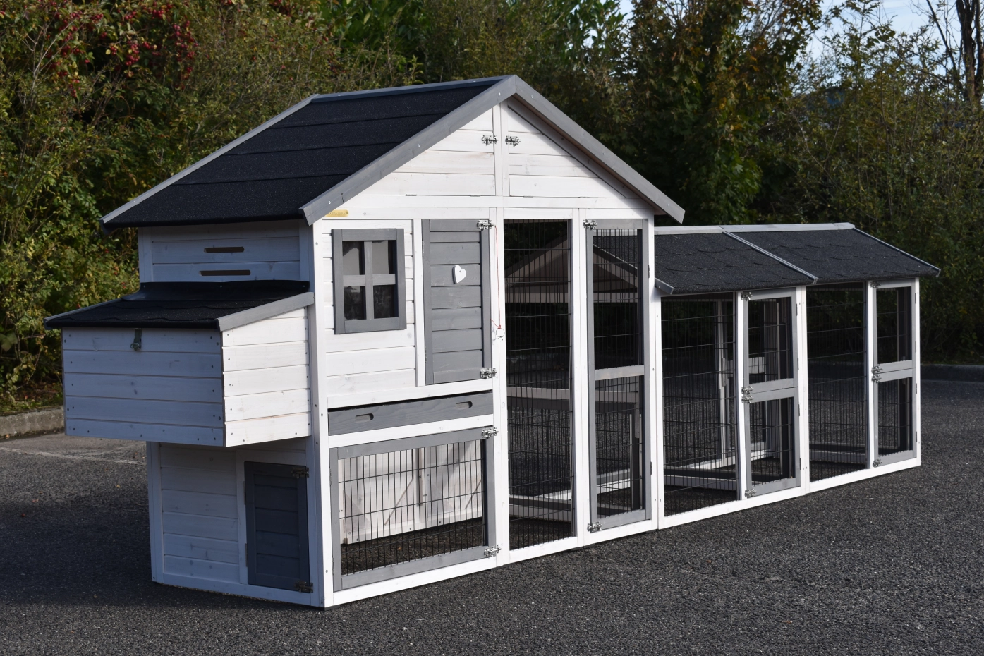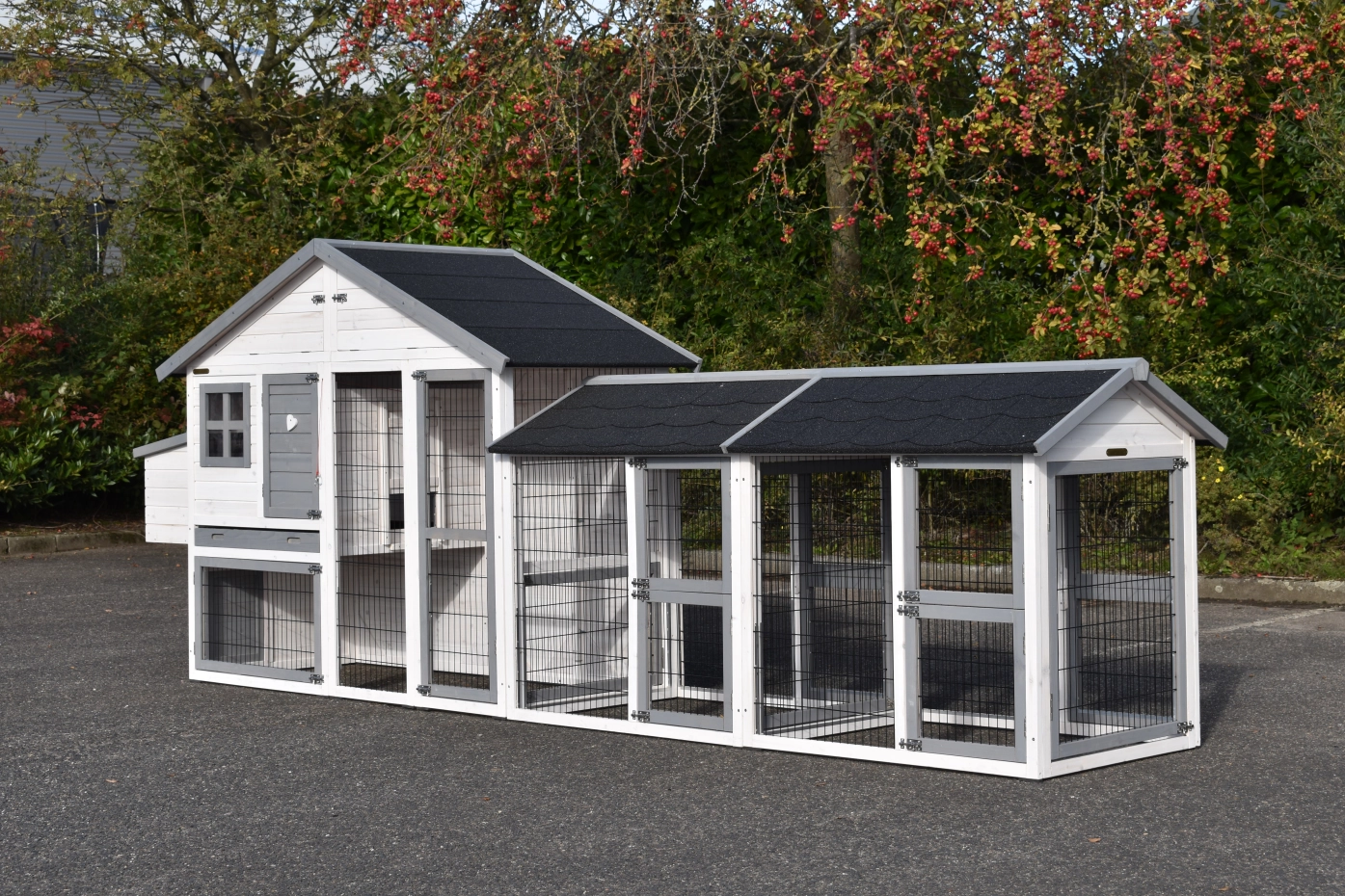 Konijnenhok Holiday Medium met 2 extra rennen is een zeer praktisch en mooi hok met nachthok en ruime ren. Dit schitterende konijnenhok is tevens voorzien van een nestkast aan de linkerzijde. Konijnenhok Holiday Medium is geschikt voor het huisvesten van ongeveer 2 tot 4 konijnen.
