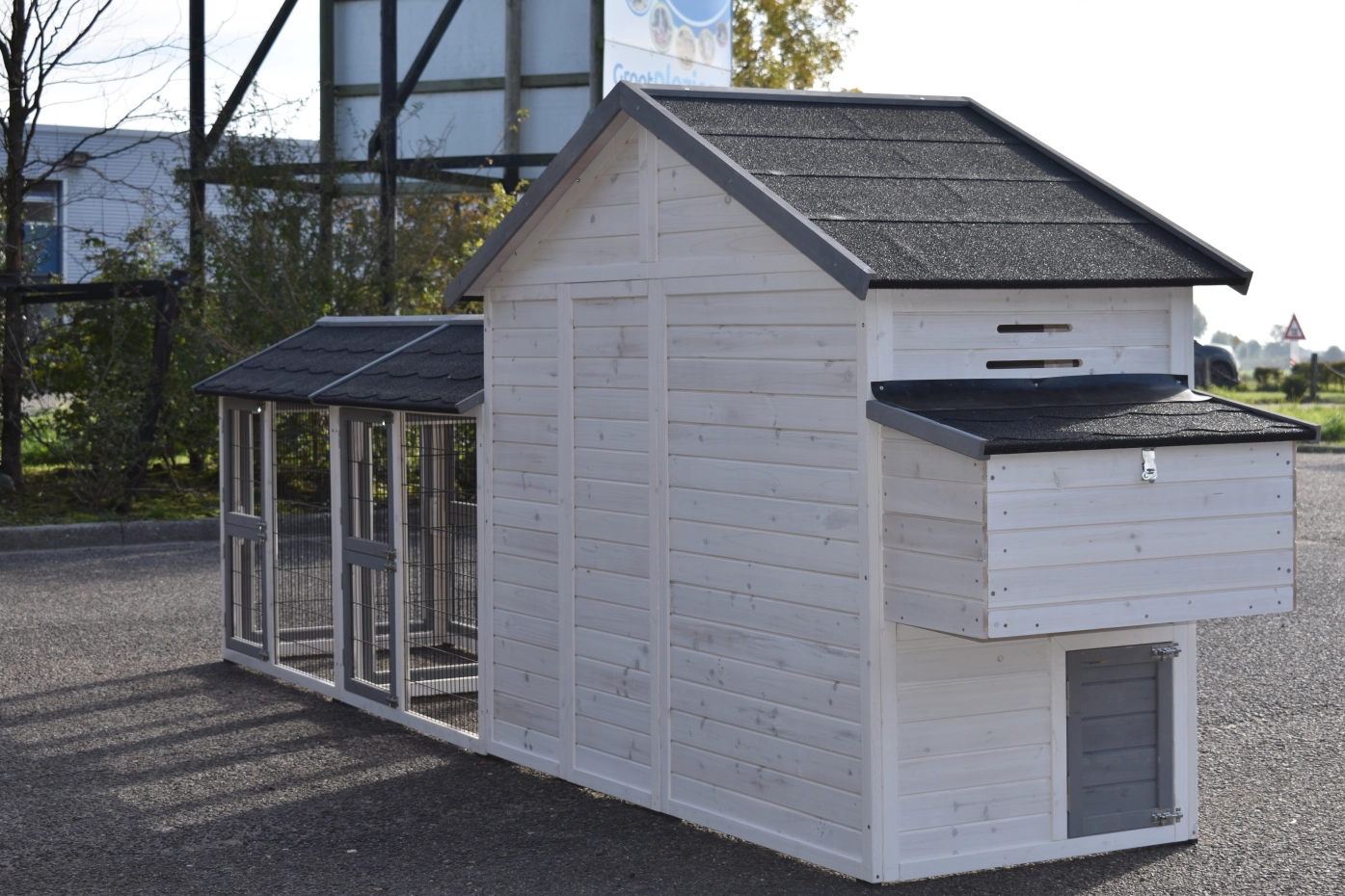 - De naad tussen hok en aanbouwren is niet waterdicht