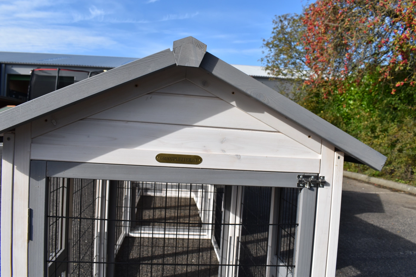 - Dit dierenhok is gemaakt van mooi dennenhout
