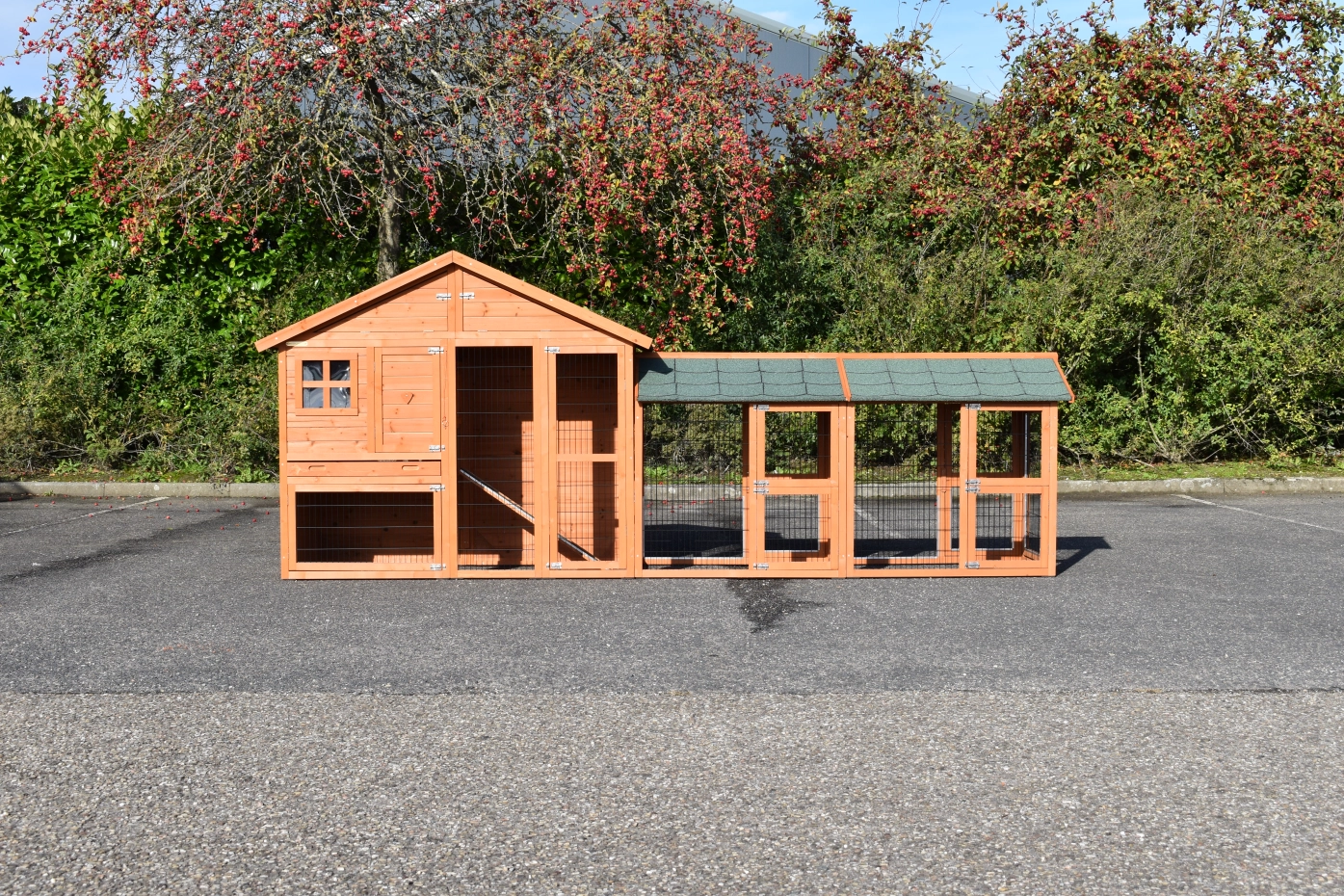 Het konijnenhok Holiday Medium is uitgebreid met 2 rennen. Het hok biedt veel ruimte voor uw konijnen. Het hok heeft een ruim nachthok, een bergzolder en een grote ren. Het konijnenhok is voorzien van groen dakleer. Het hok is geschikt voor 2 tot 4 konijnen.