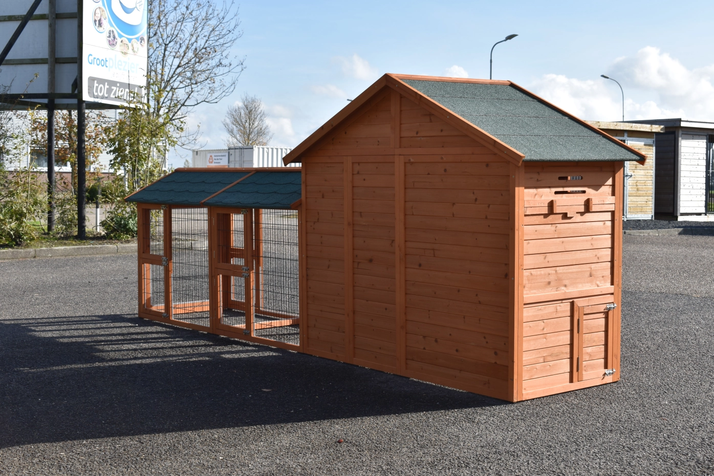 - Dit dierenhok is gemaakt van mooi dennenhout