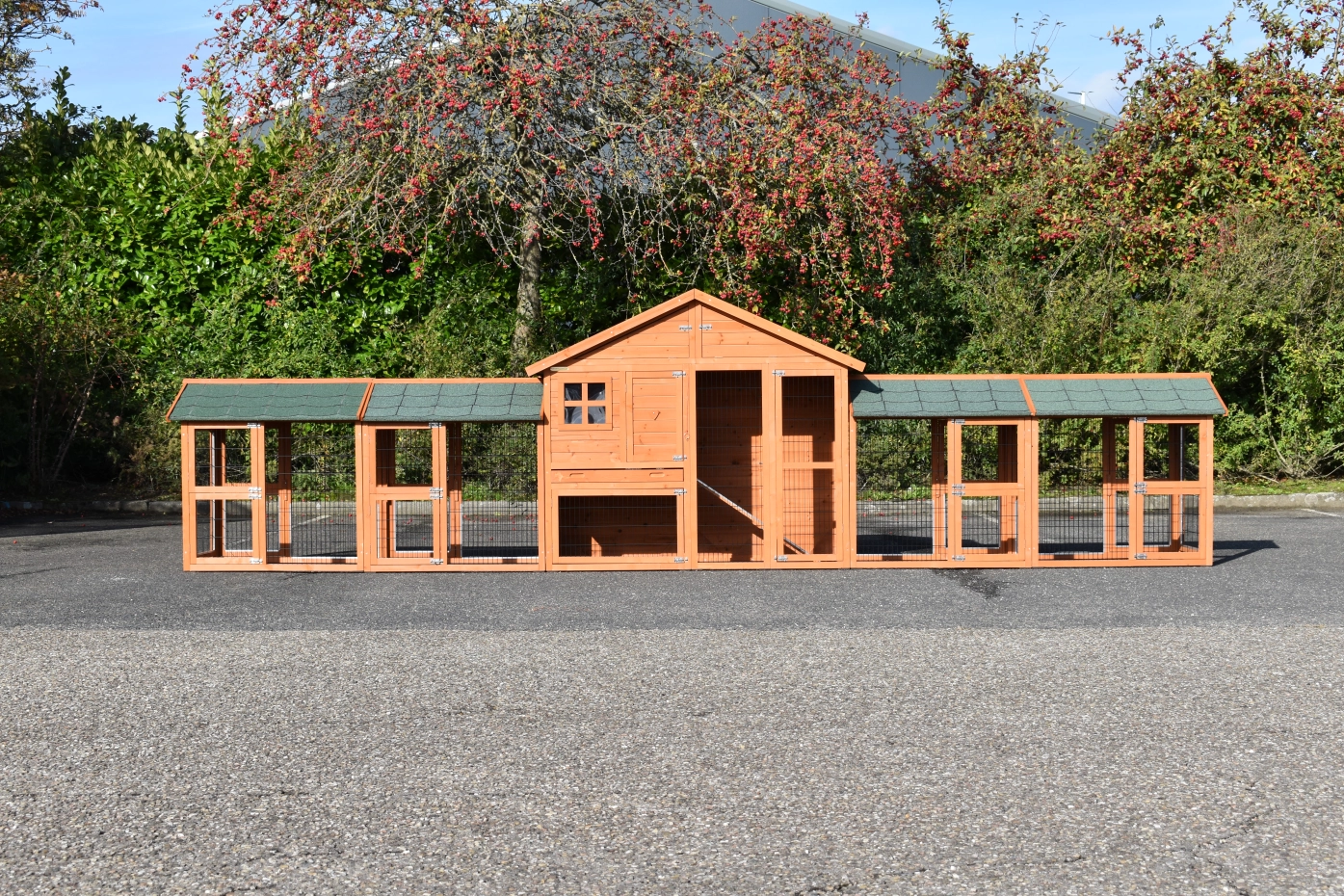 Konijnenhok Holiday Medium Antiknaag met uitloopren. Dierenverblijf Holiday Medium met 4 rennen is een zeer praktisch en mooi konijnenhok met ruim nachthok en royale rennen. Konijnenhok Holiday Medium met uitlooprennen is geschikt voor het huisvesten van grote konijnen, zoals franse hangoren, vlaamse reuzen, andere grote rassen of een groepje konijnen.