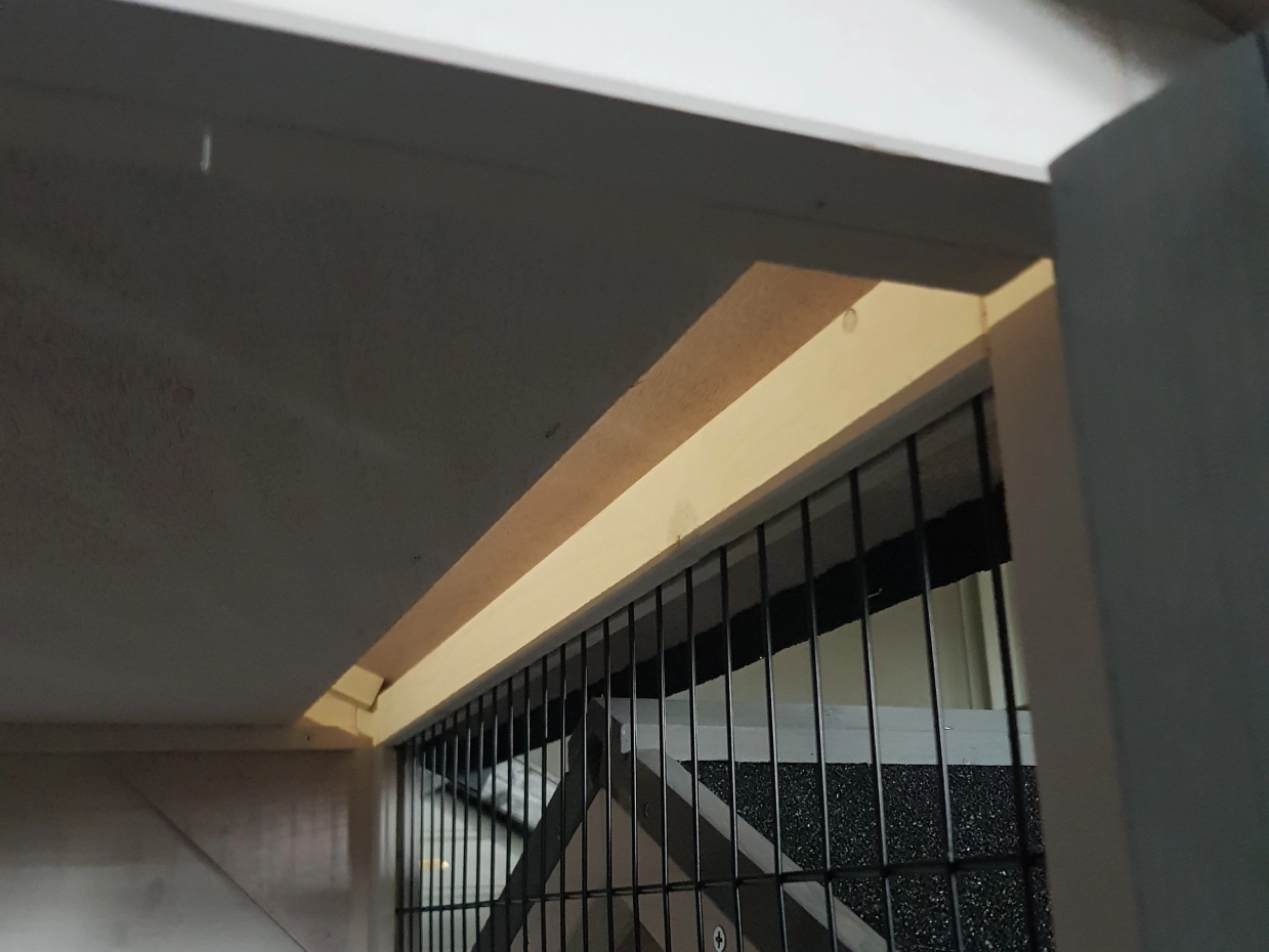 - Het hok heeft een dak met dakleer