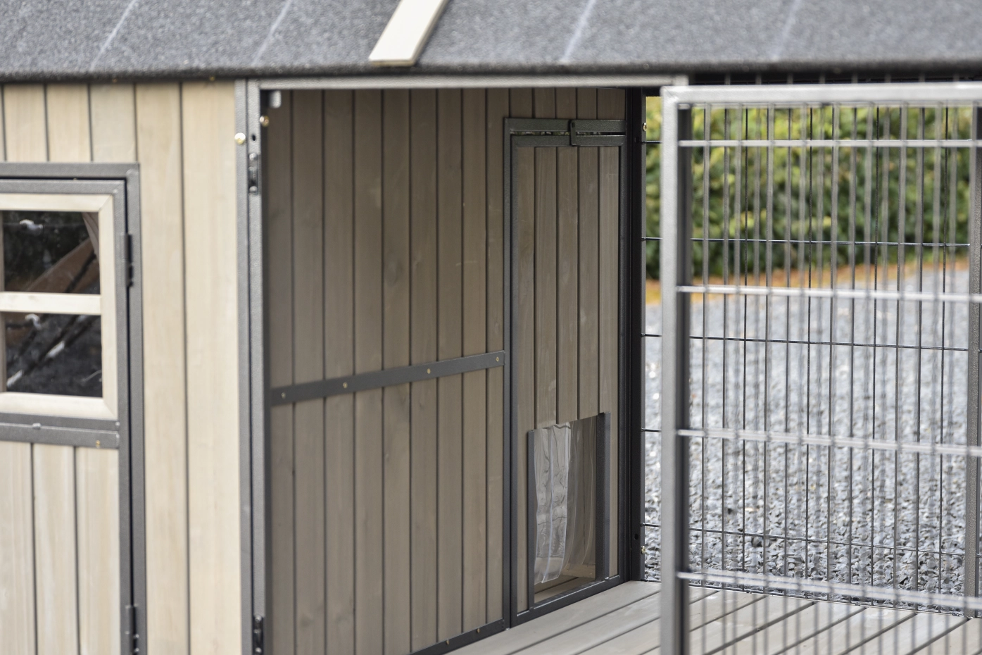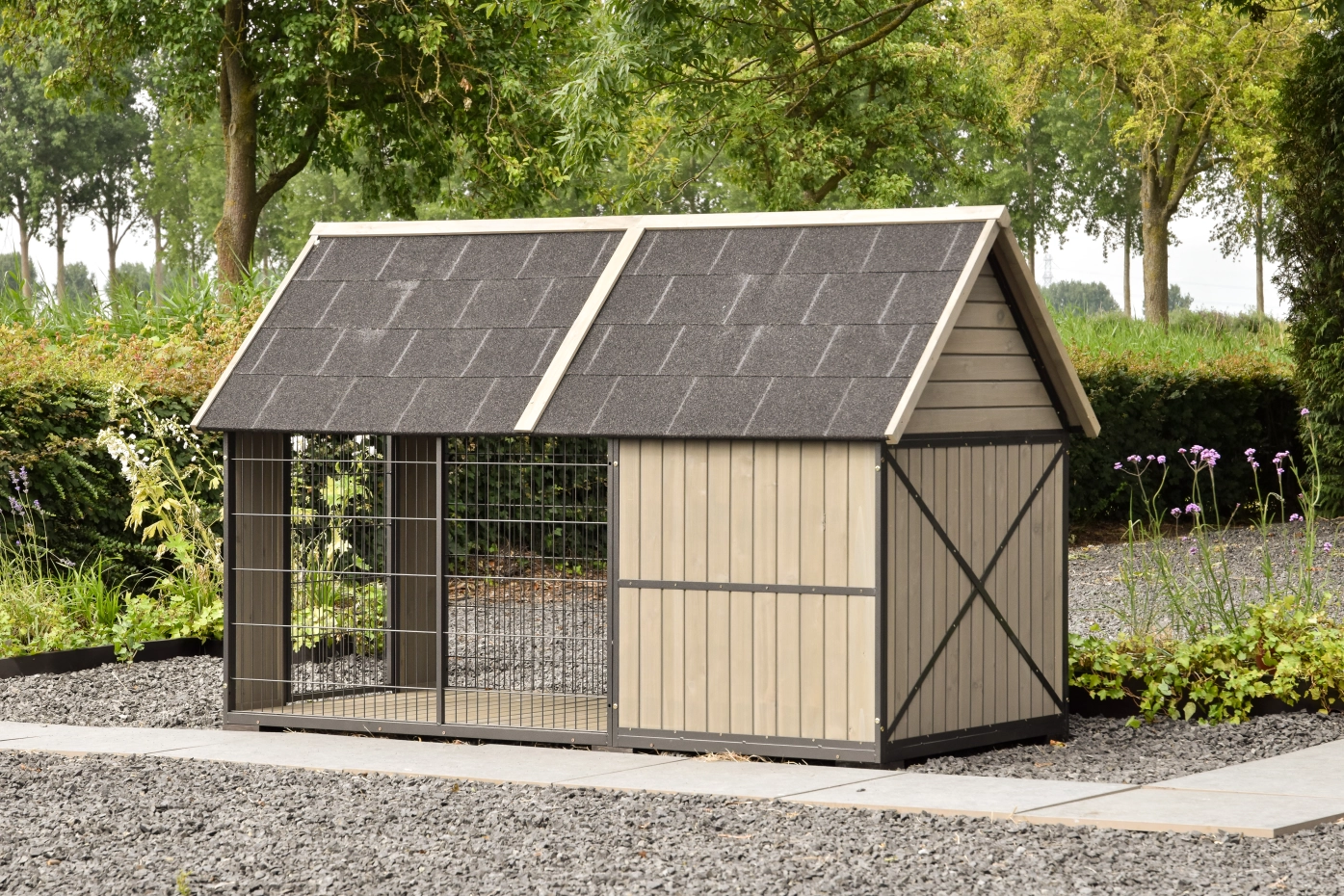 - Dierenhok van dennenhout met stevig, gecoat stalen frame en zwart gaas