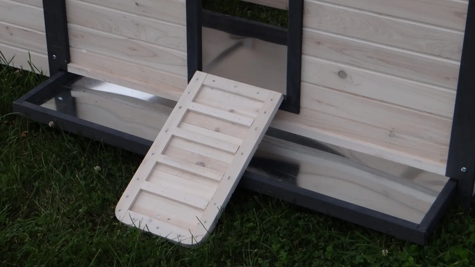 - Wanneer het hok niet op een beschutte plaats staat, dan adviseren wij om het te verankeren