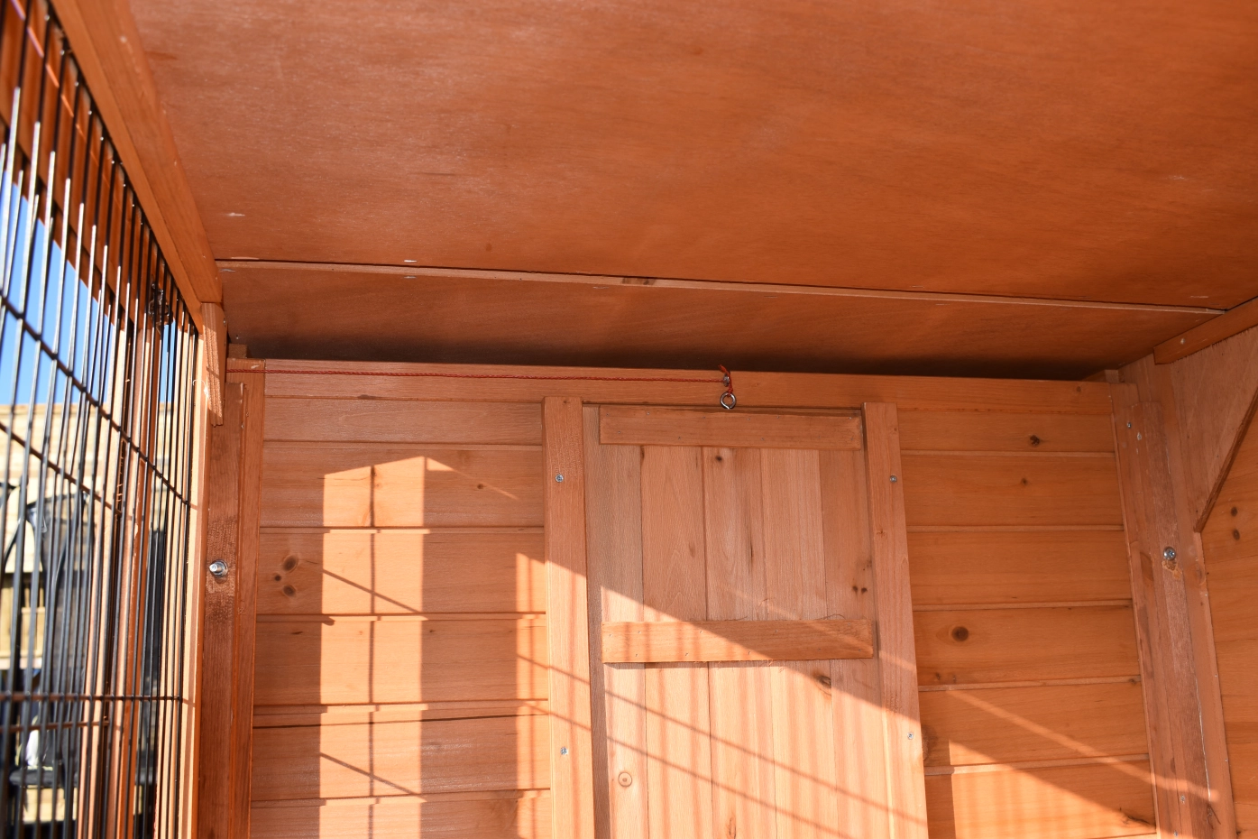 - Het hok heeft een dak met dakleer