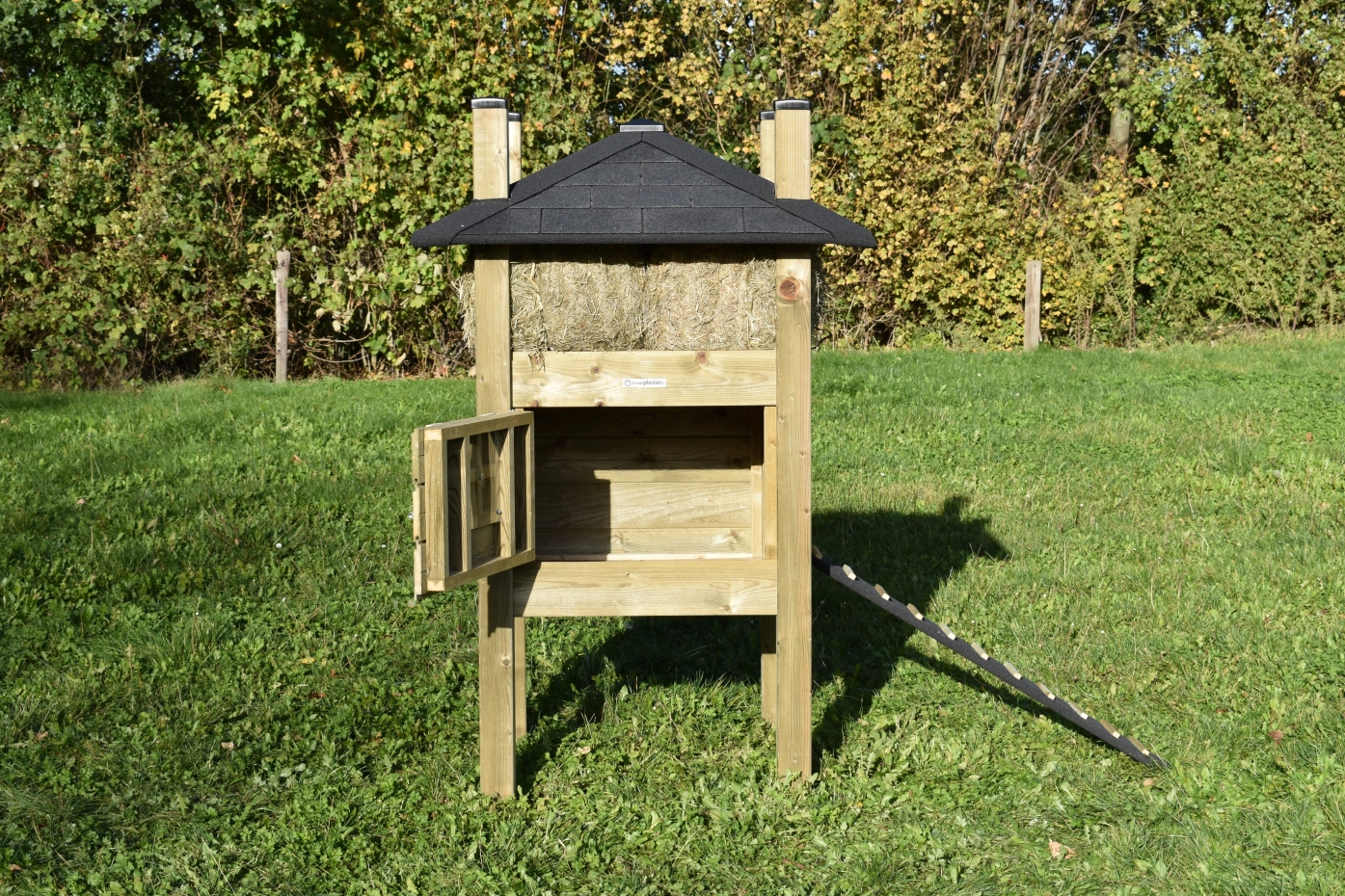 Konijnenhok hooiberg Rosa. Met deze hooiberg in uw tuin hebt u een paleisje voor uw konijnen! Ruim nachthok met een brede deur. Gemaakt van geïmpregneerd vurenhout, dit geeft het hok een lange levensduur. Mooi stijlvol hok! Gebruiksvriendelijk en onderhoudsarm!