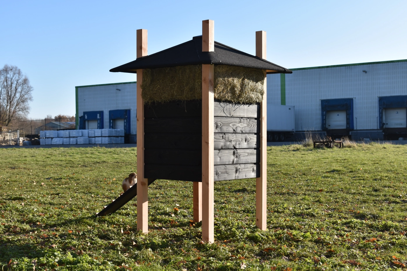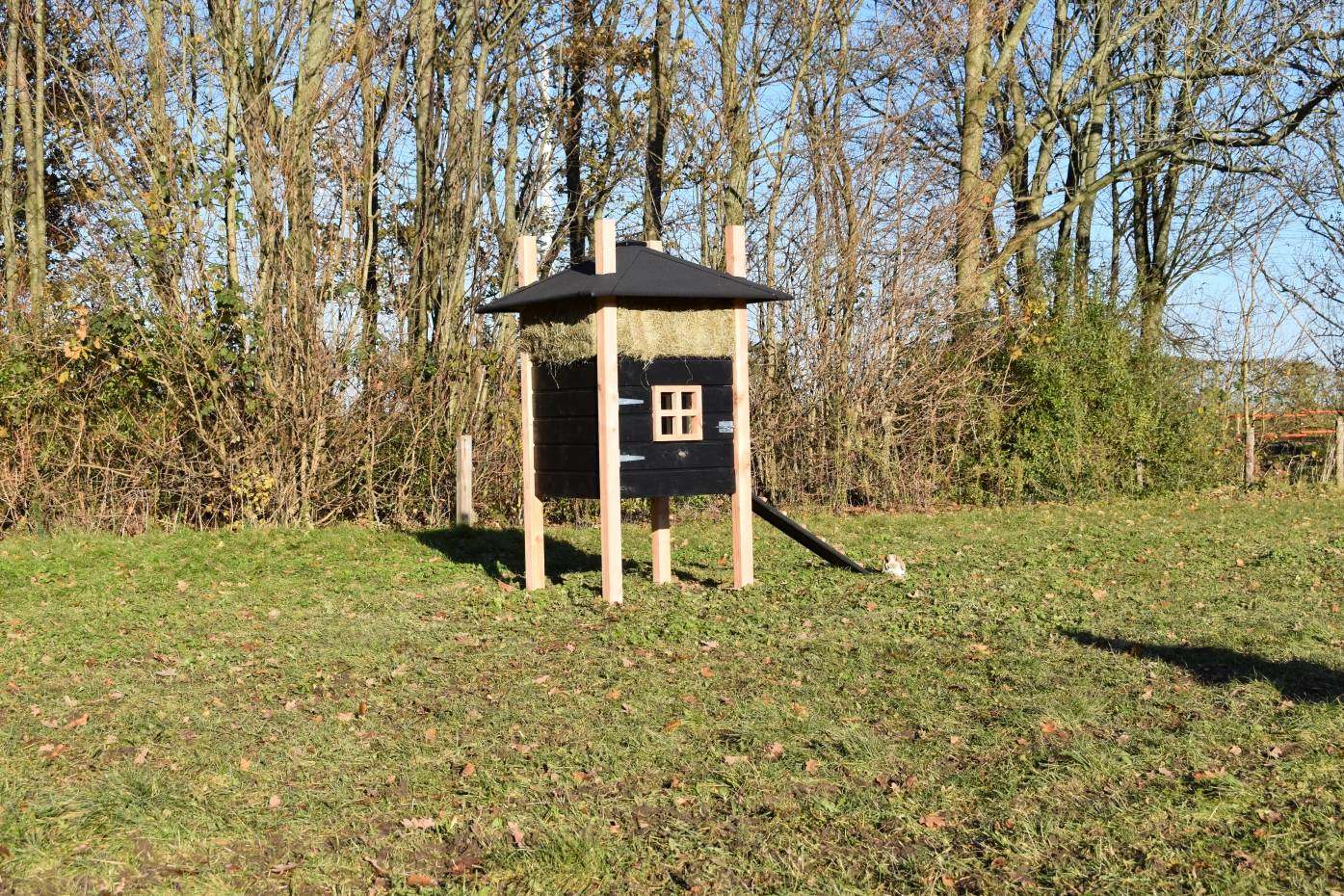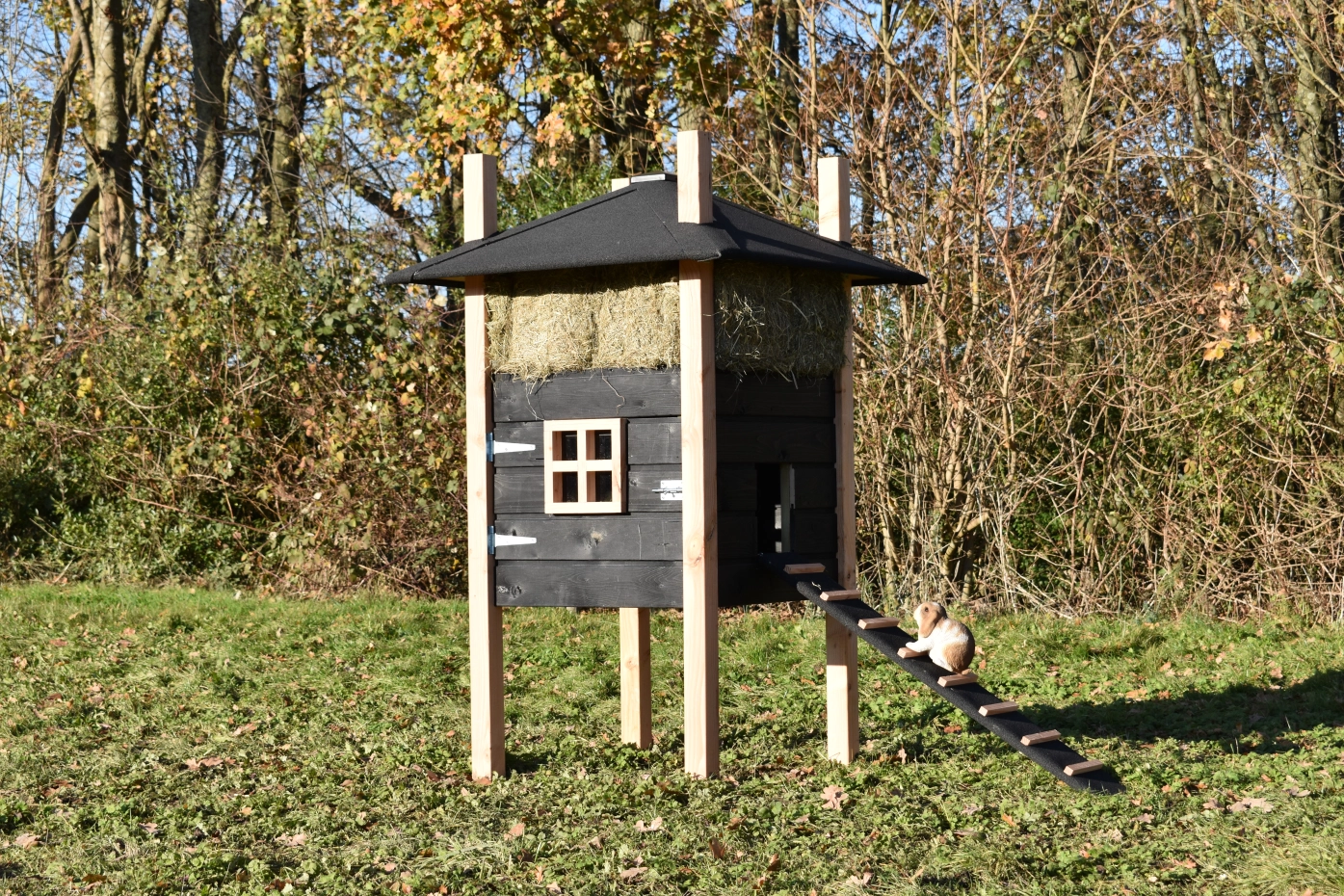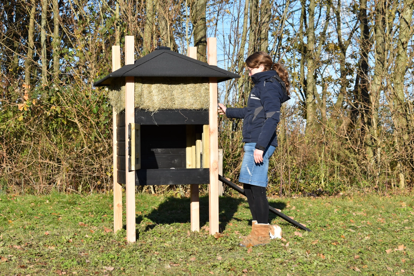 Konijnenhok hooiberg Rosalynn Douglas zwart. Prachtig hok met luxe uitstraling. De combinatie van Douglas palen en zwart rabat maakt dit tot een echte hooiberg! Als u de hooibalen op maat mee besteld hebt u echt een plaatje voor uw tuin. Het hok beschikt over een ruim nachthok met brede toegang deur. Handig in gebruik! Prijs en kwaliteit verhouding is echt top!