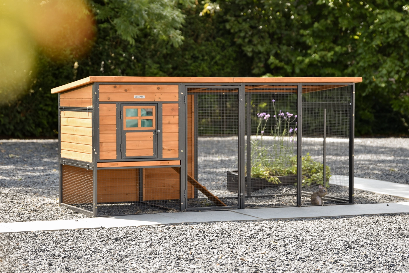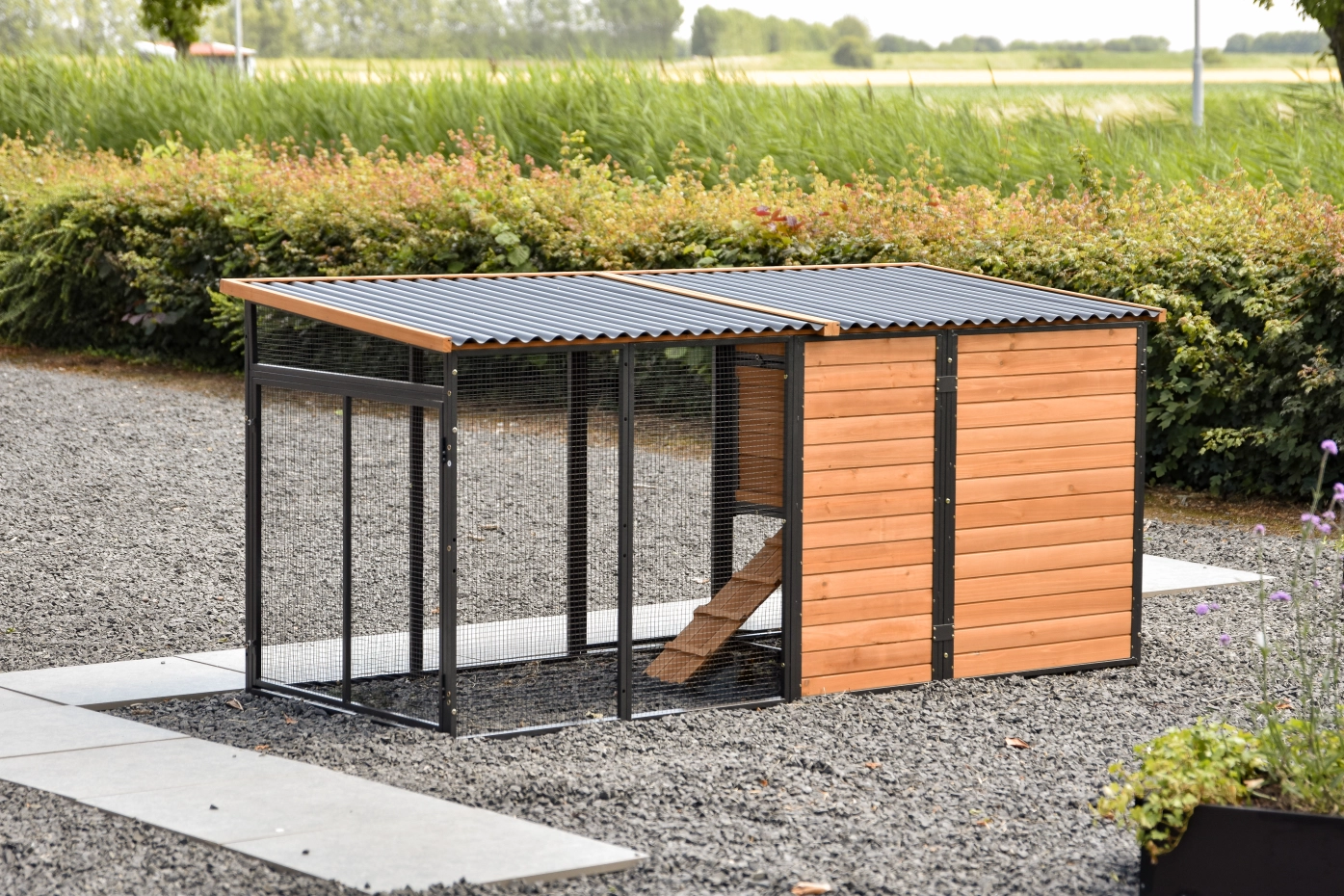 - Het hok is voorzien van een kunststof dak