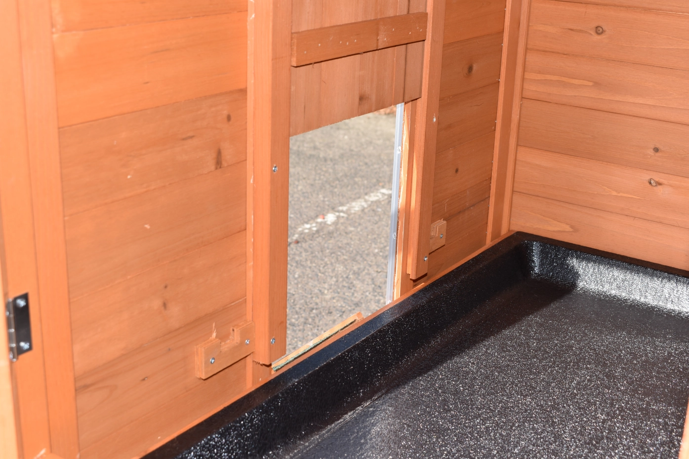 - Het hok heeft anti-knaagstrips op de meest gevoelige plekken, maar is niet volledig beschermd. Voor onbeschermde randen kunt u extra anti-knaagstrips mee bestellen.