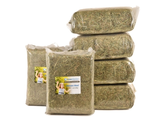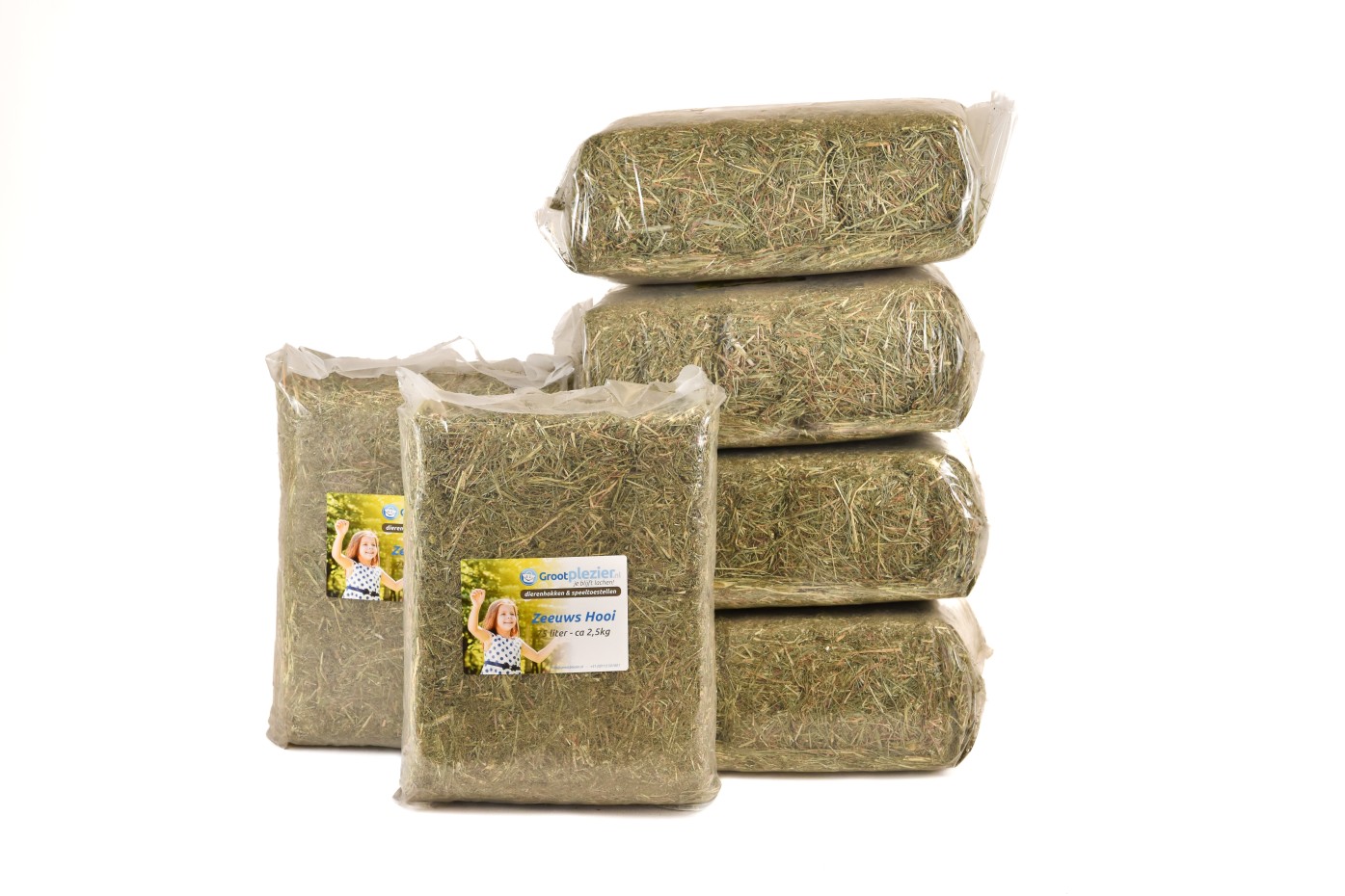 Zeeuws Hooi! Zó van de Zeeuwse weilanden, dat zal uw huisdier waarderen. Pak mee dat voordeel ! 6 grote pakken hooi van 2,5kg. Bestel uw hooi direct mee bij een konijnenhok, en u betaalt geen extra verzendkosten!