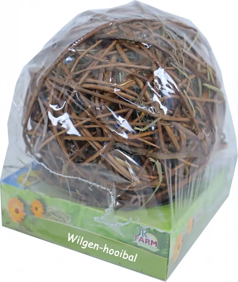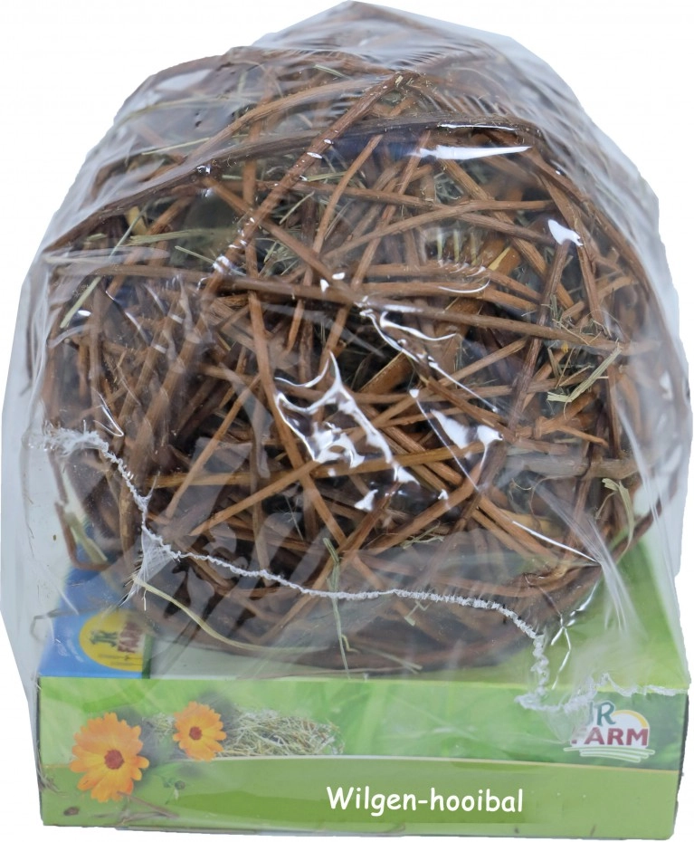 De wilgen hooibal is gemaakt van wilgentakjes en volledig gevuld met goudsbloem en bergweidehooi. Een ideale combinatie van knagen en spelen voor een konijn, cavia, chinchilla, rat of fret. 100% natuurlijk speelplezier voor uw huisdier!