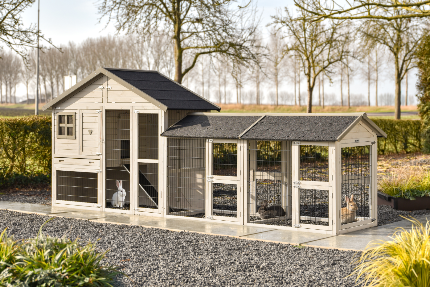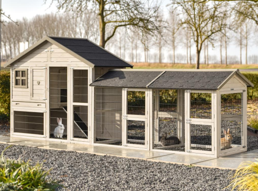 Konijnenhok Holiday Medium Light-grey met 2 rennen