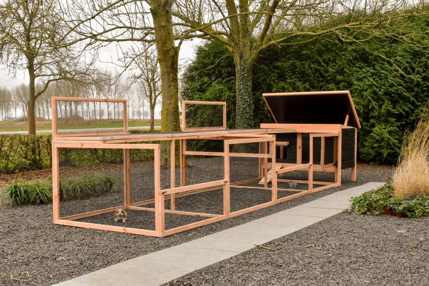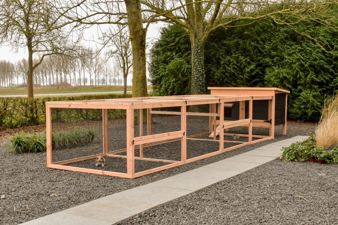 Het konijnenhok Eggy met dubbele ren biedt uw konijnen volop ruimte en comfort. Dankzij de praktische ren is het hok eenvoudig schoon te maken, waardoor het onderhoud snel en moeiteloos blijft. Perfect voor een gezonde en veilige leefomgeving voor uw konijnen.