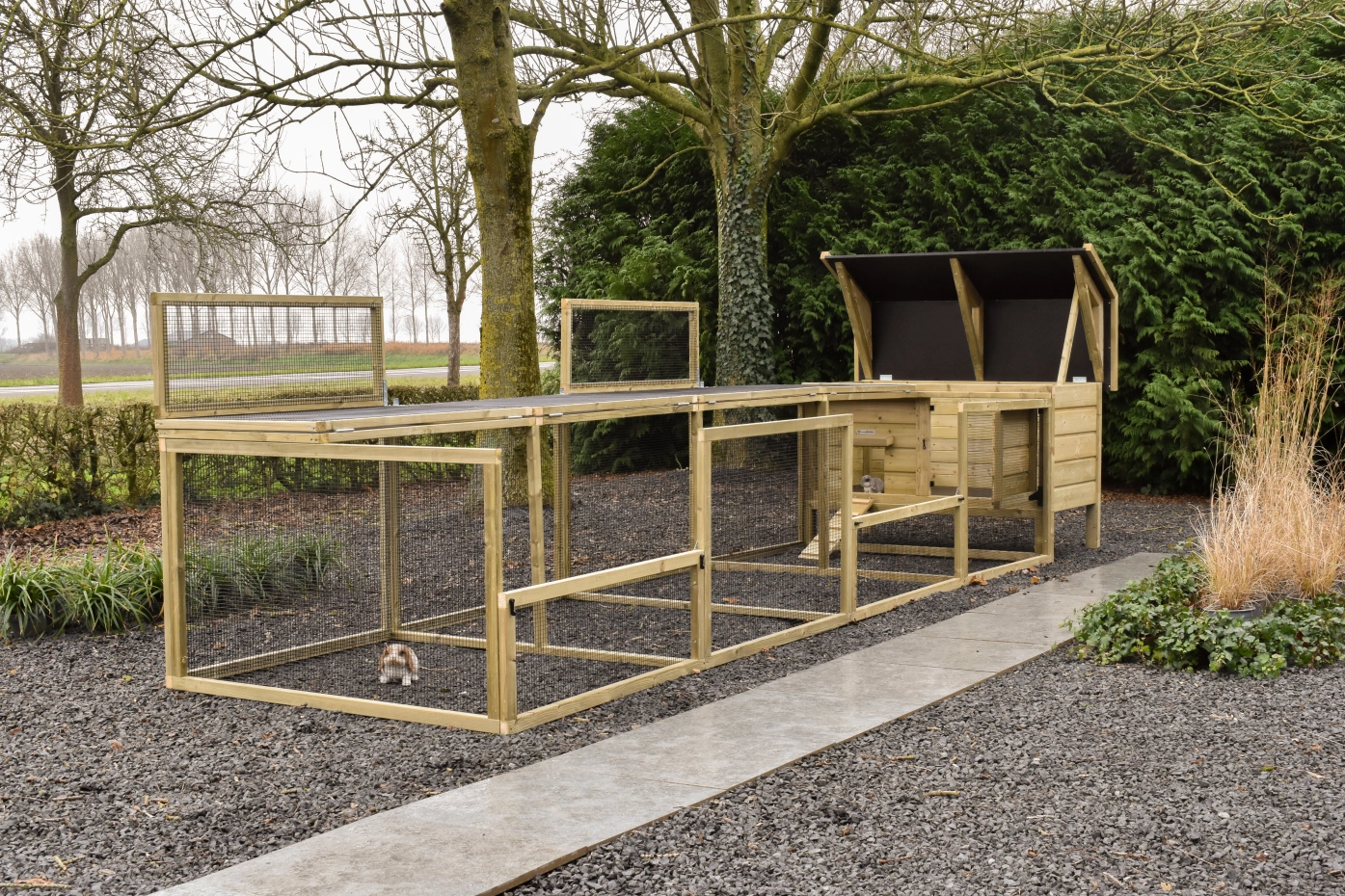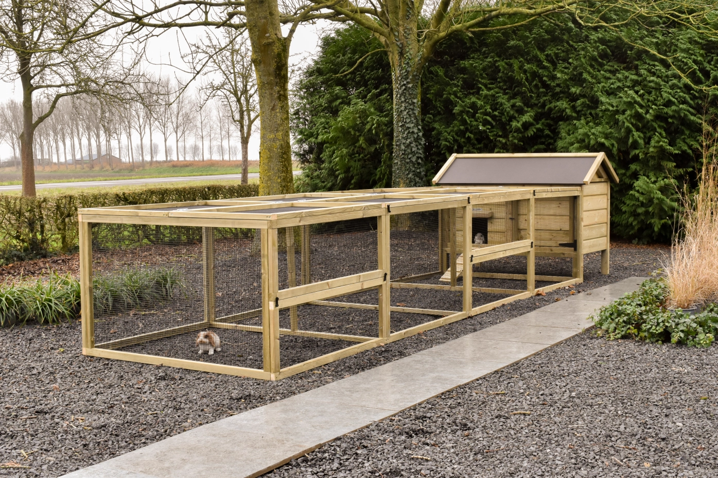 Het konijnenhok Eggy met dubbele ren biedt uw konijnen volop ruimte en comfort. Dankzij de praktische ren is het hok eenvoudig schoon te maken, waardoor het onderhoud snel en moeiteloos blijft. Perfect voor een gezonde en veilige leefomgeving voor uw konijnen.