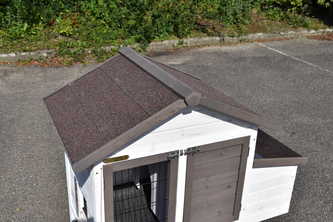 - Het hok heeft anti-knaagstrips op de meest gevoelige plekken, maar is niet volledig beschermd. Voor onbeschermde randen kunt u extra anti-knaagstrips mee bestellen.