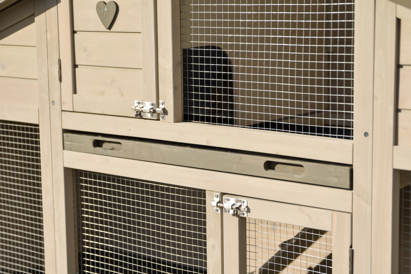 Konijnenhok Annemieke met massieve achterwand en zijwanden met ruime deuren. Deze prachtige konijnenvilla zorgt voor goede beschutting tegen veel regen en wind. Konijnenhok Annemieke is werkelijk een plaatje om te zien.