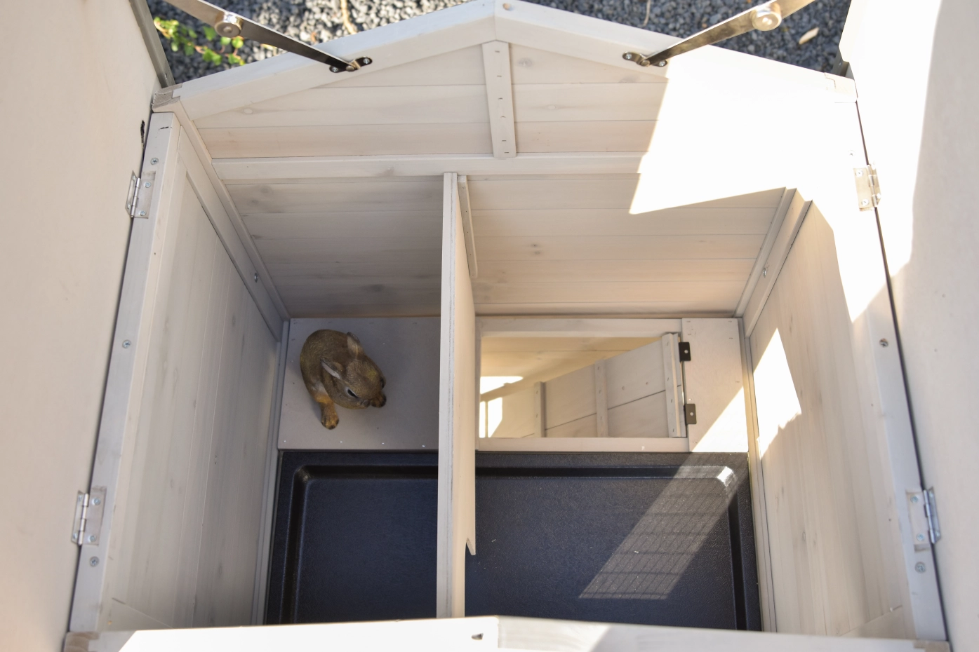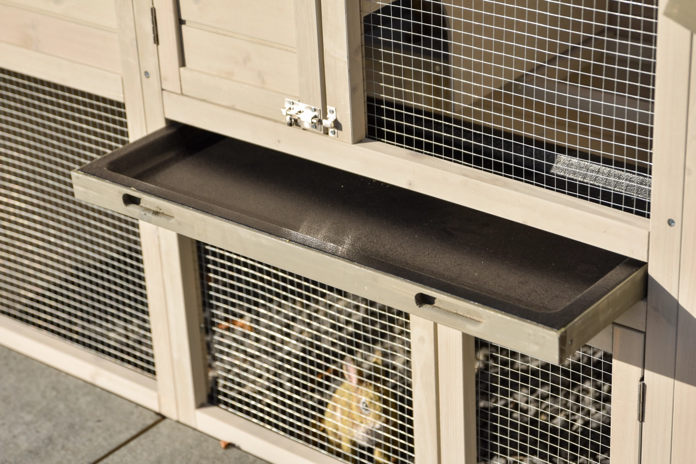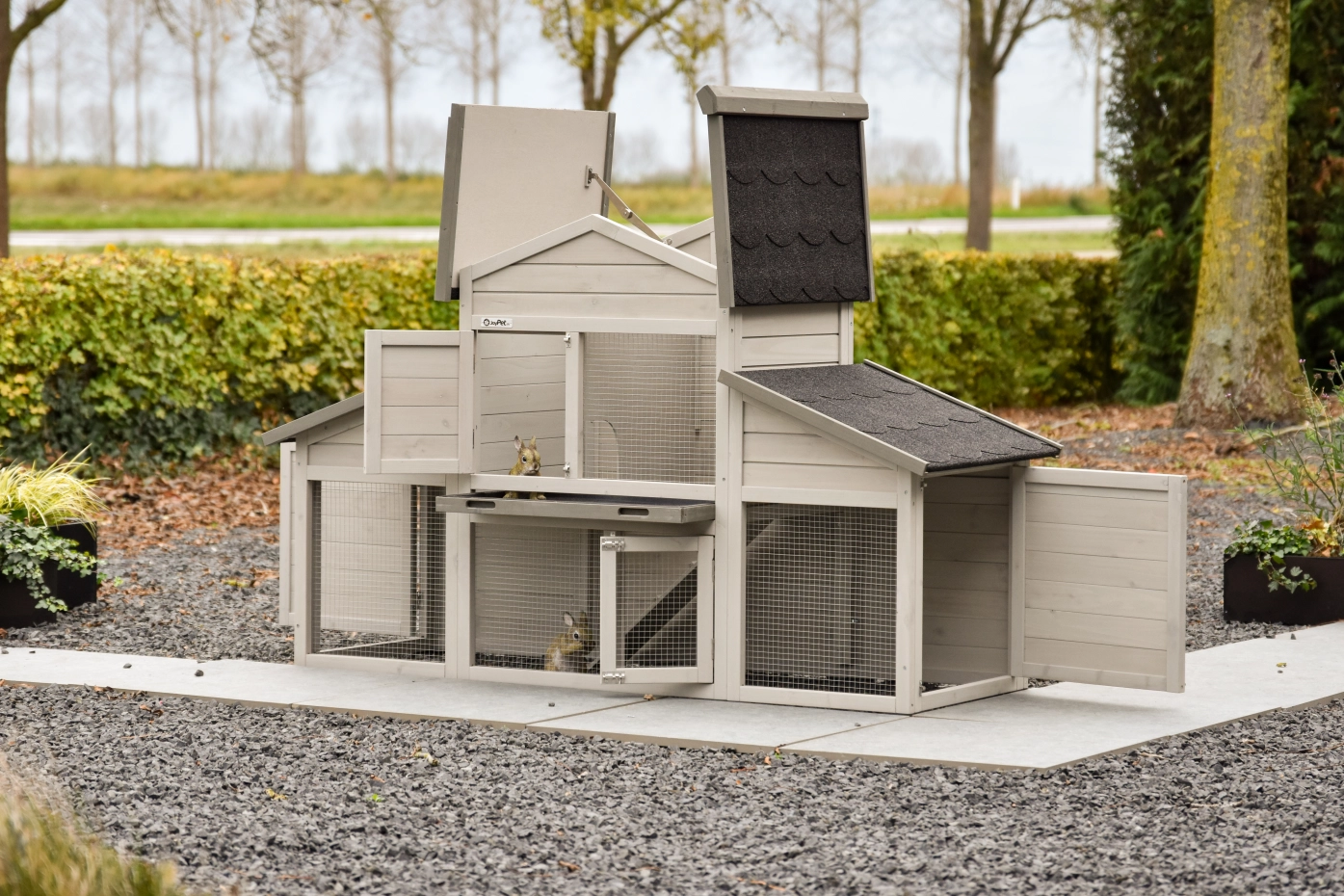 - Het konijnenhok is niet voorzien van anti-knaagstrips. Om knagen aan het hok te voorkomen kunt u anti-knaagstrips mee bestellen.