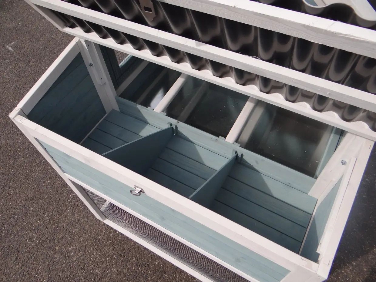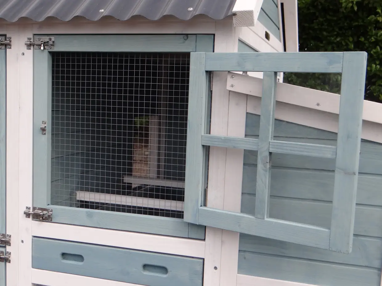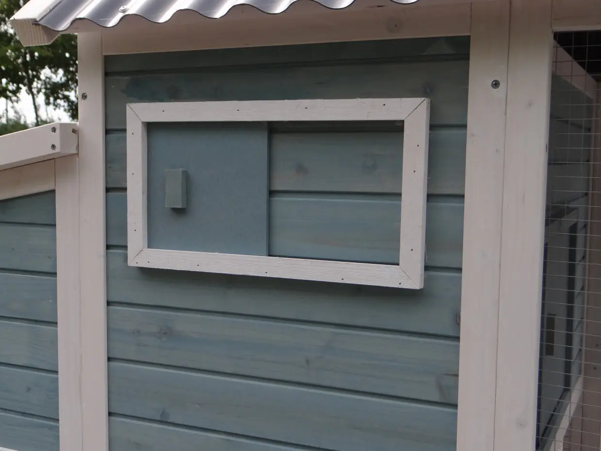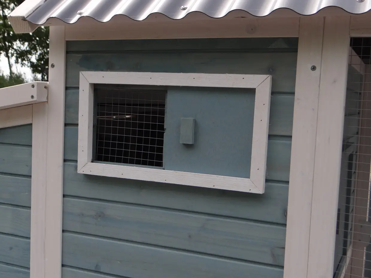 - Het hok is voorzien van een kunststof dak
