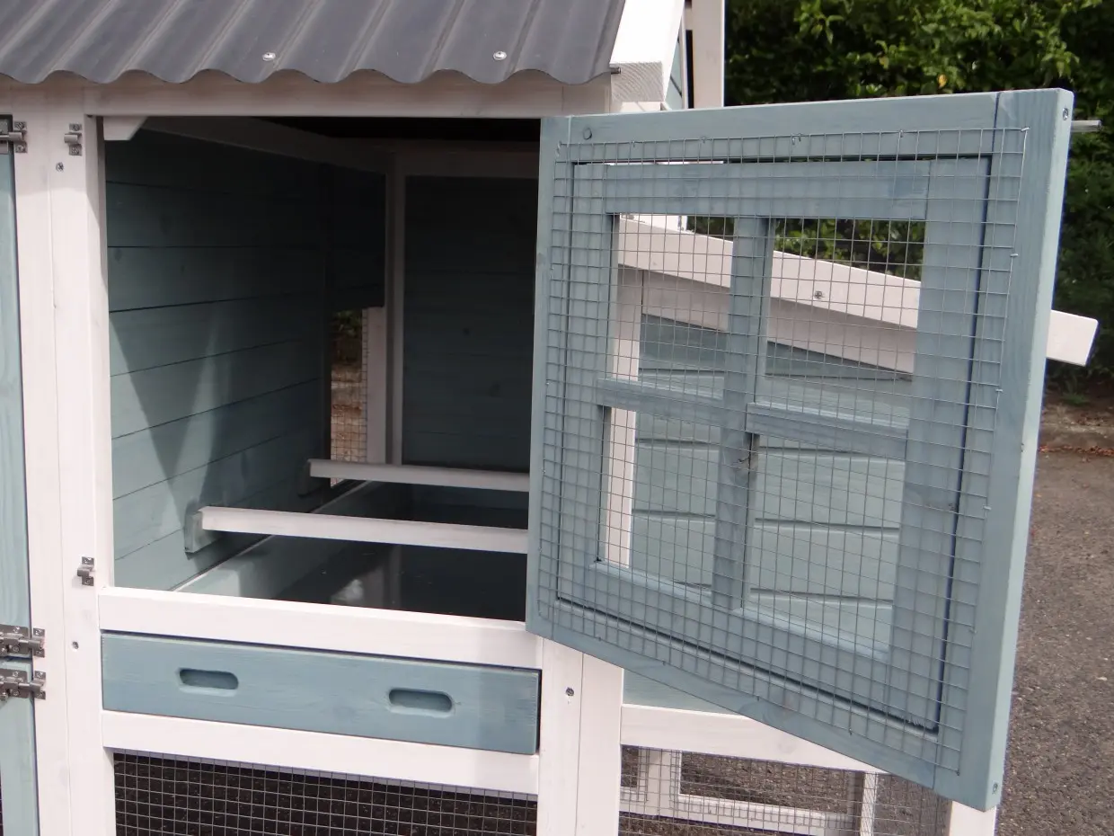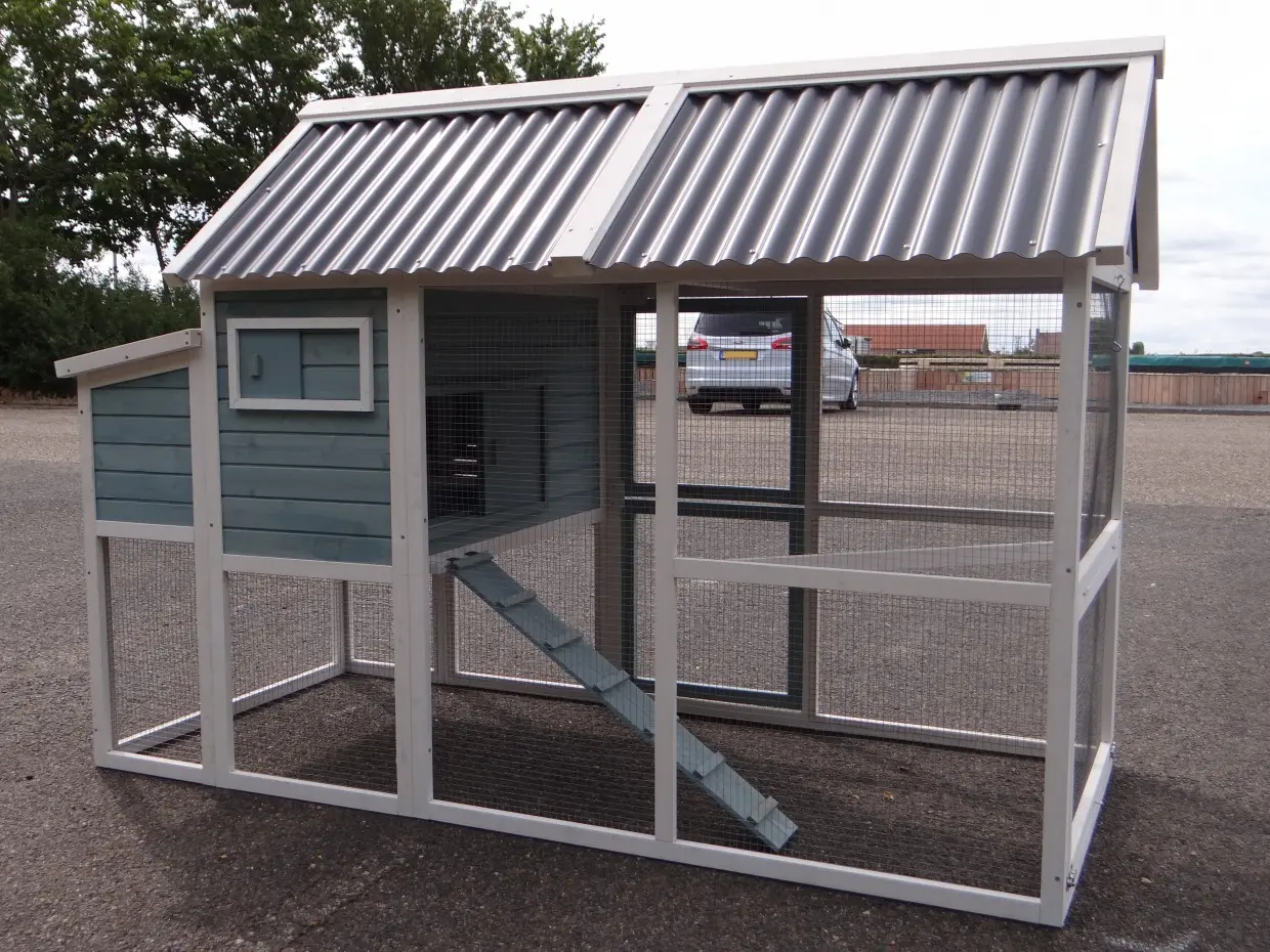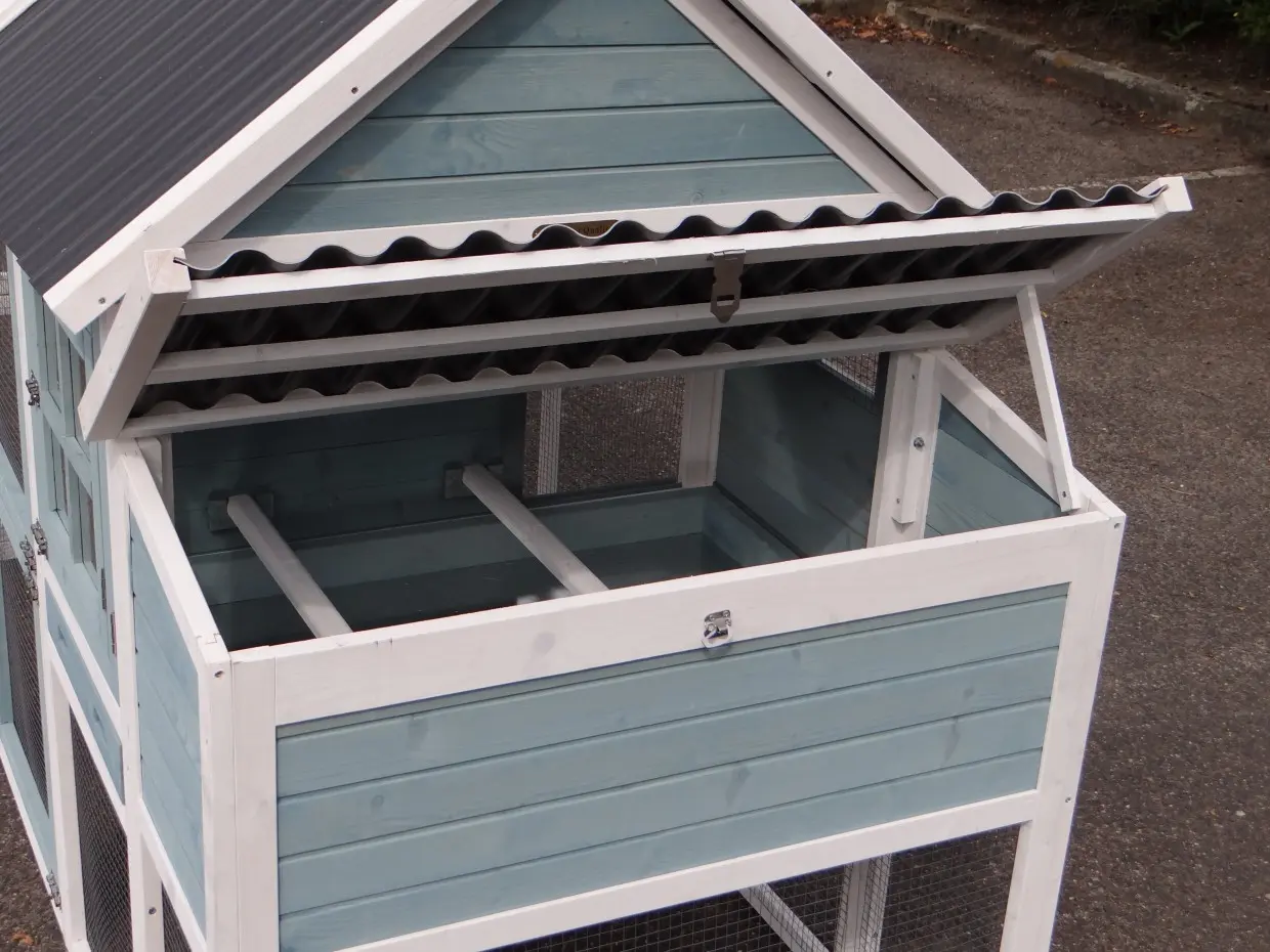 - Het hok is voorzien van een kunststof dak