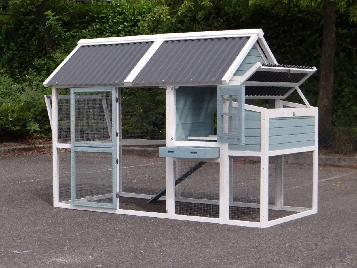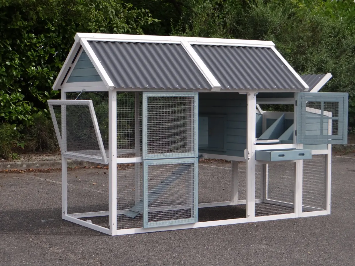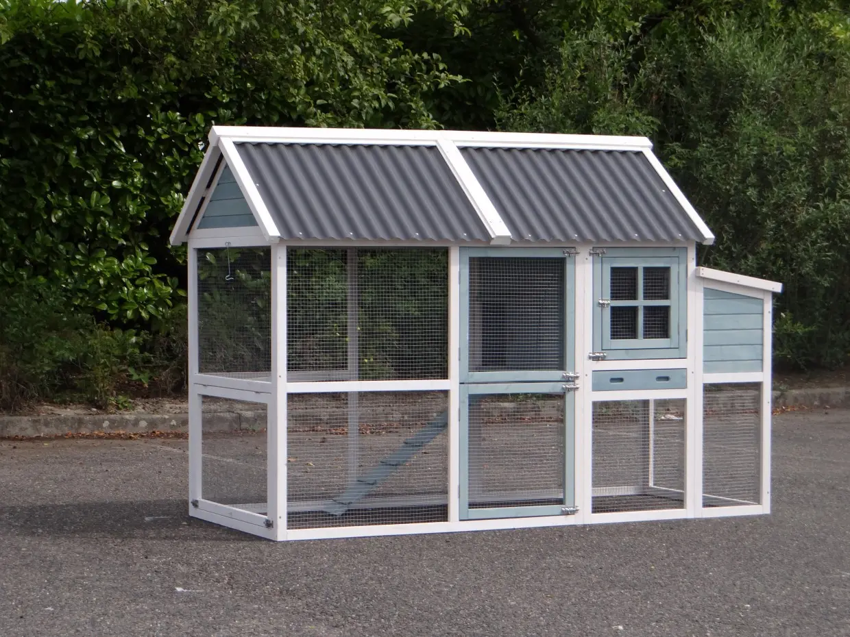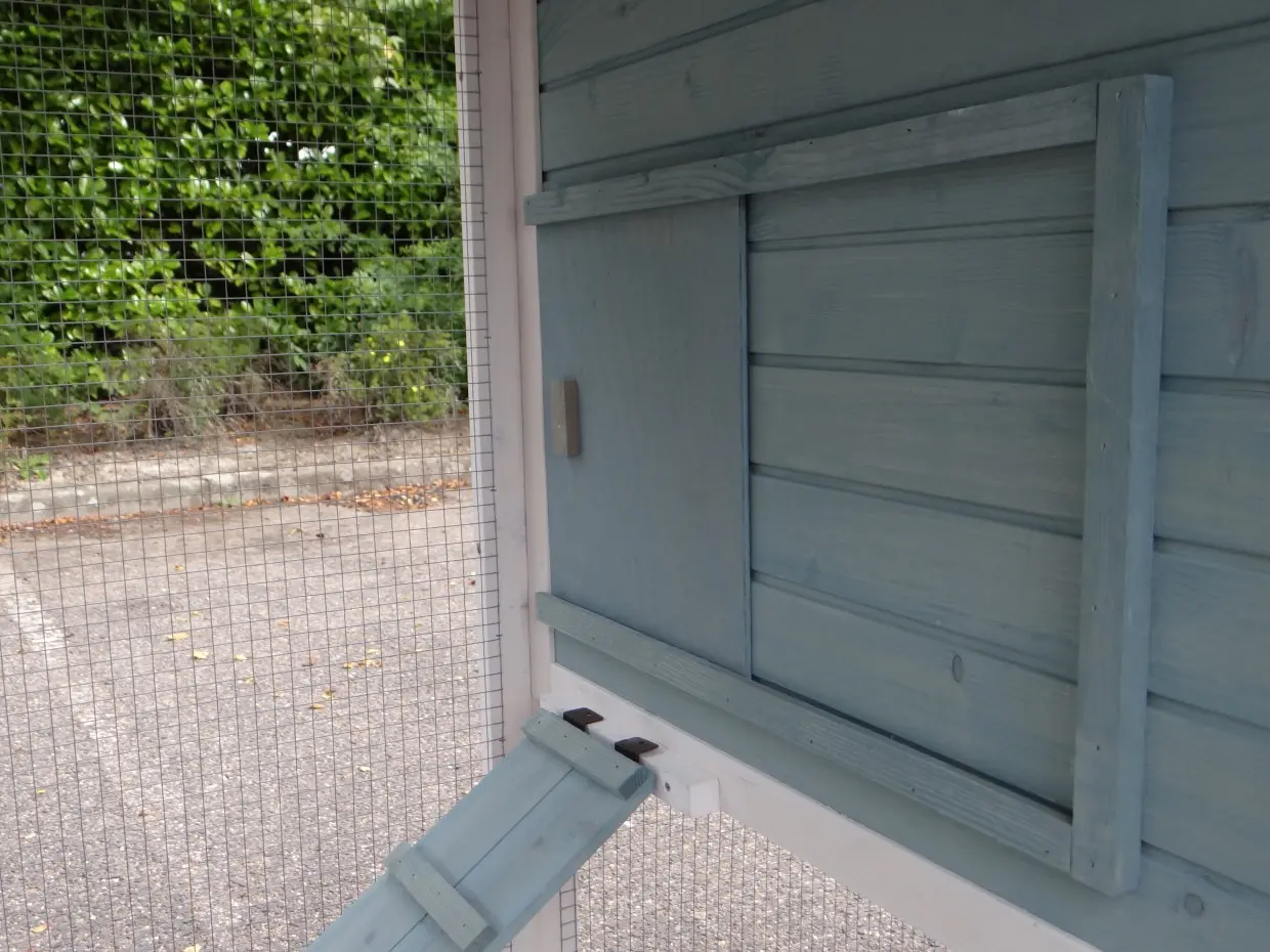 - Het hok is voorzien van een kunststof dak