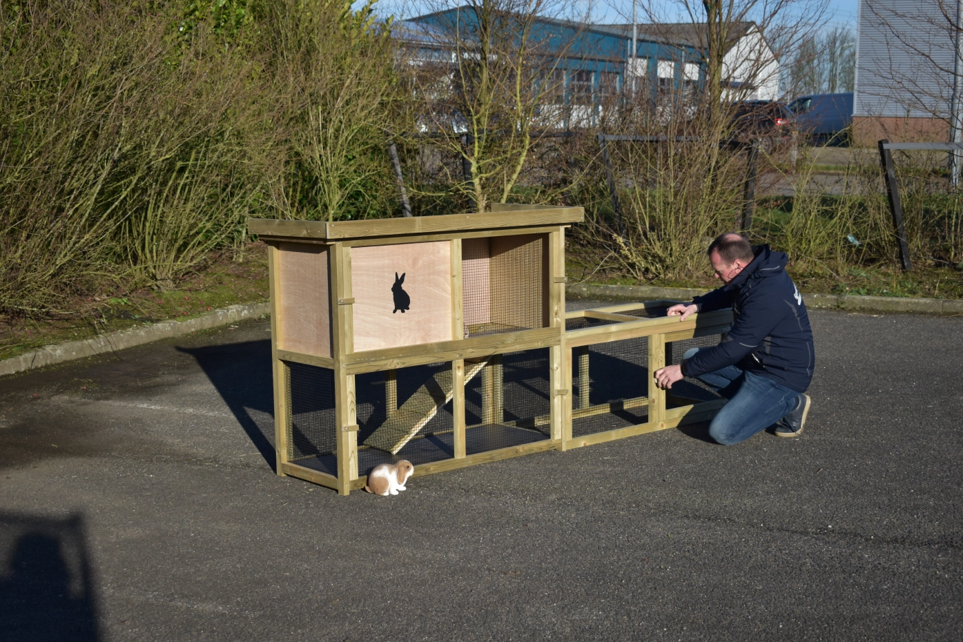 - Het konijnenhok is niet voorzien van anti-knaagstrips. Om knagen aan het hok te voorkomen kunt u anti-knaagstrips mee bestellen.