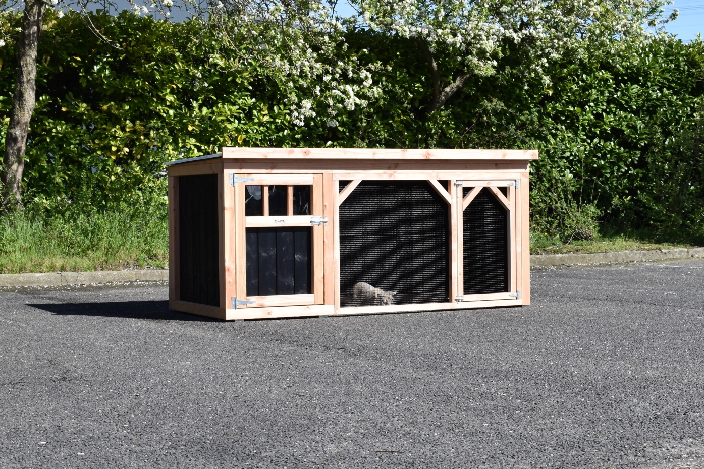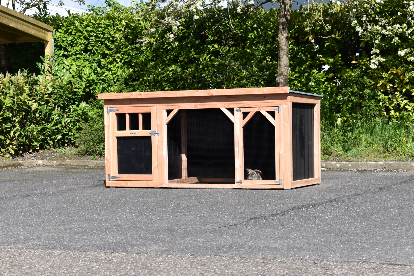 Konijnenhok Belle 1 is een prachtig en stevig konijnenhok met ruime ren. Doordat deze Belle 1 versie alleen aan de voorkant een opening heeft, hebben konijnen veel beschutting tegen wind en weersinvloeden. Het beschutte nachthok heeft een douglas houten bodem en een ruime deur. Dit wordt bij ons zelf gemaakt van goede kwaliteit materialen. Hierdoor is het erg onderhoudsvrij en stevig.