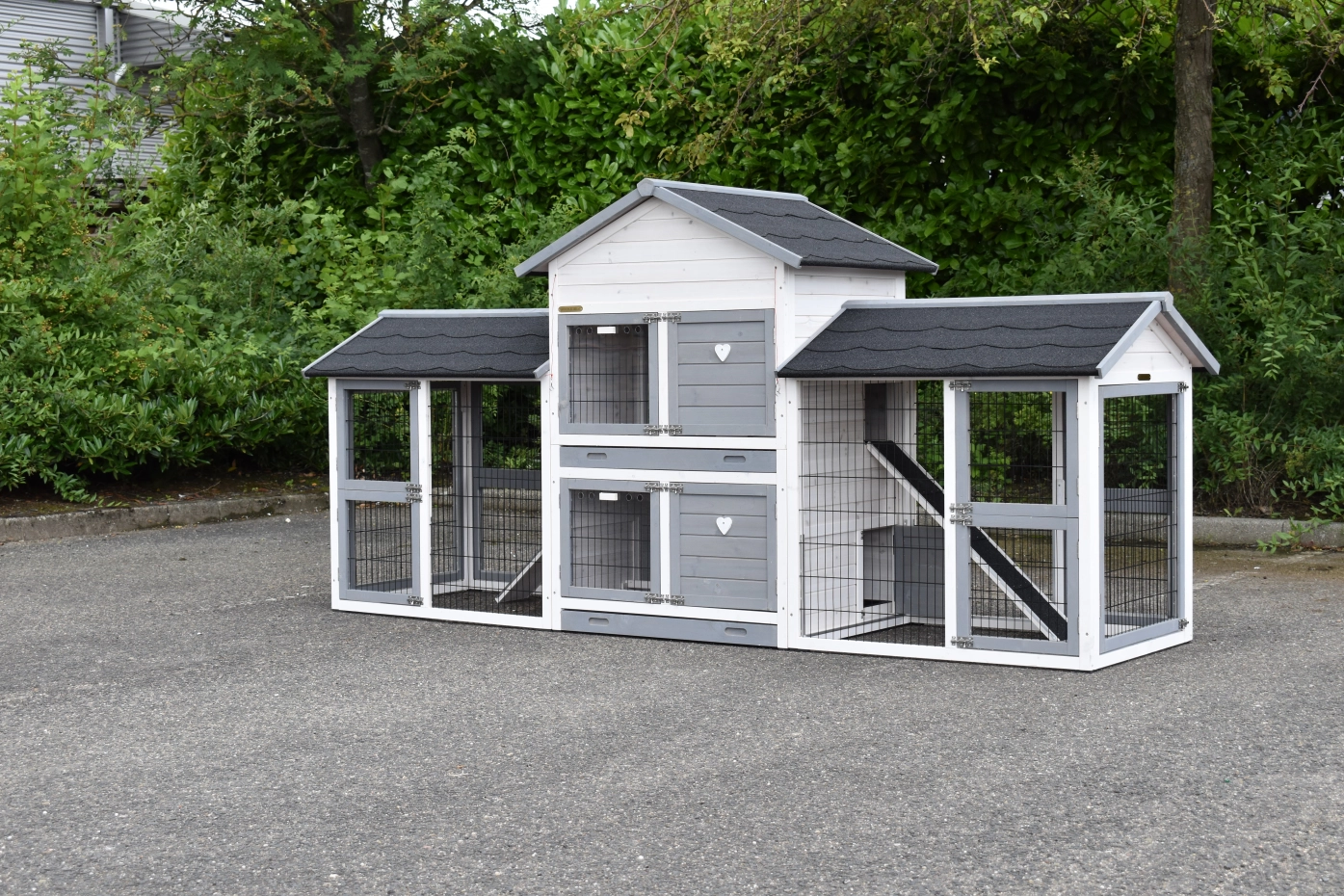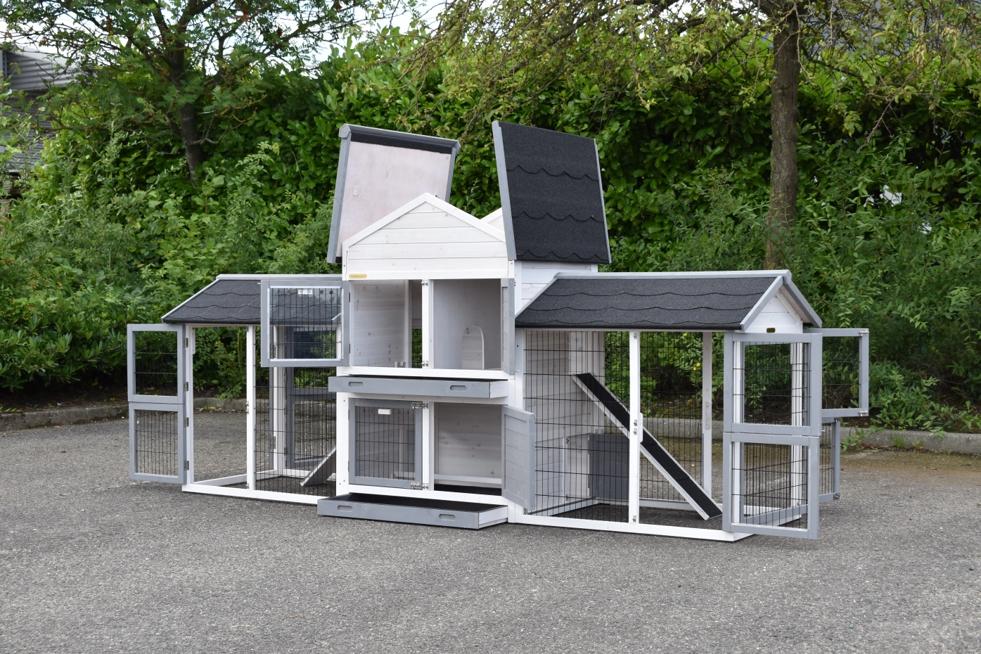 - Dit dierenverblijf is tegelijk als kippenhok en konijnenhok te gebruiken