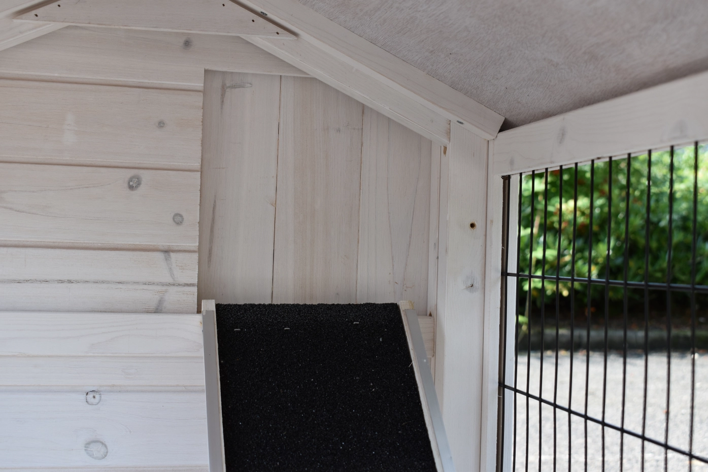 • Het hok heeft een dak met dakleer