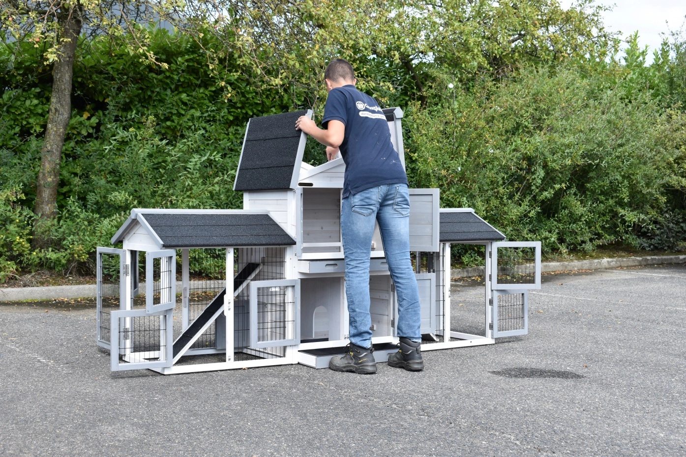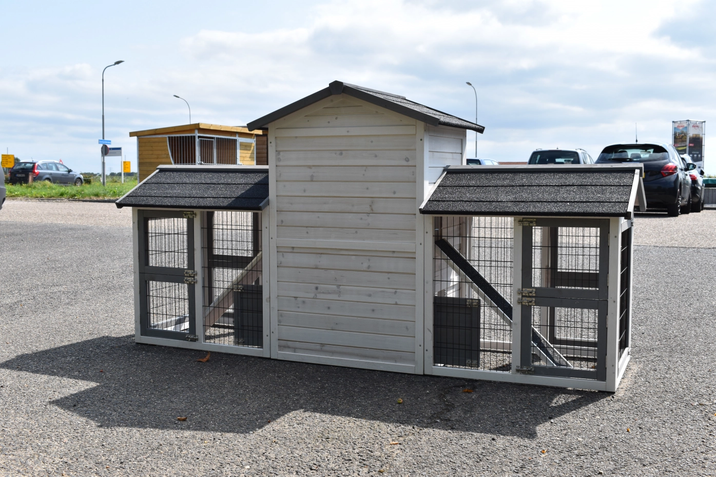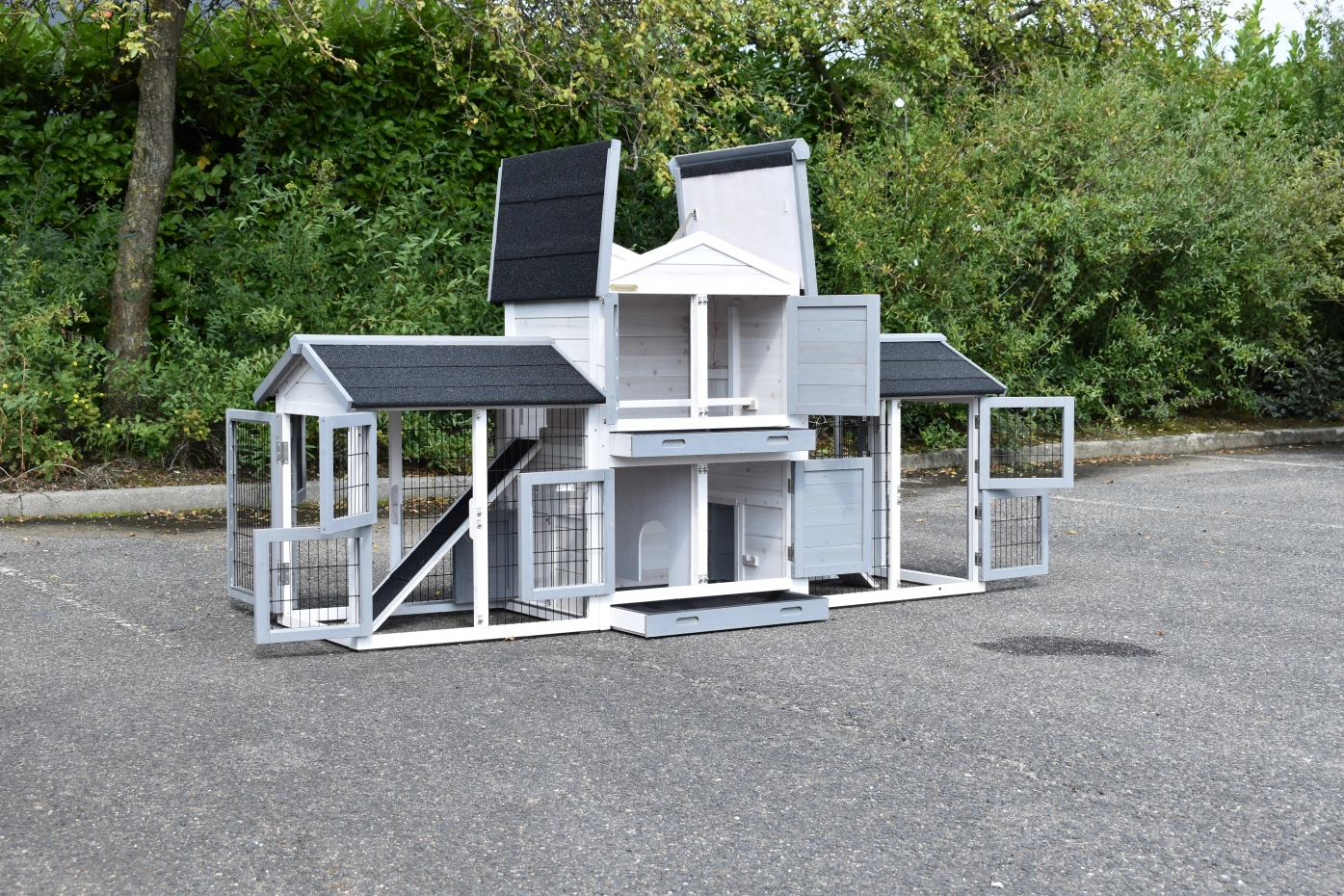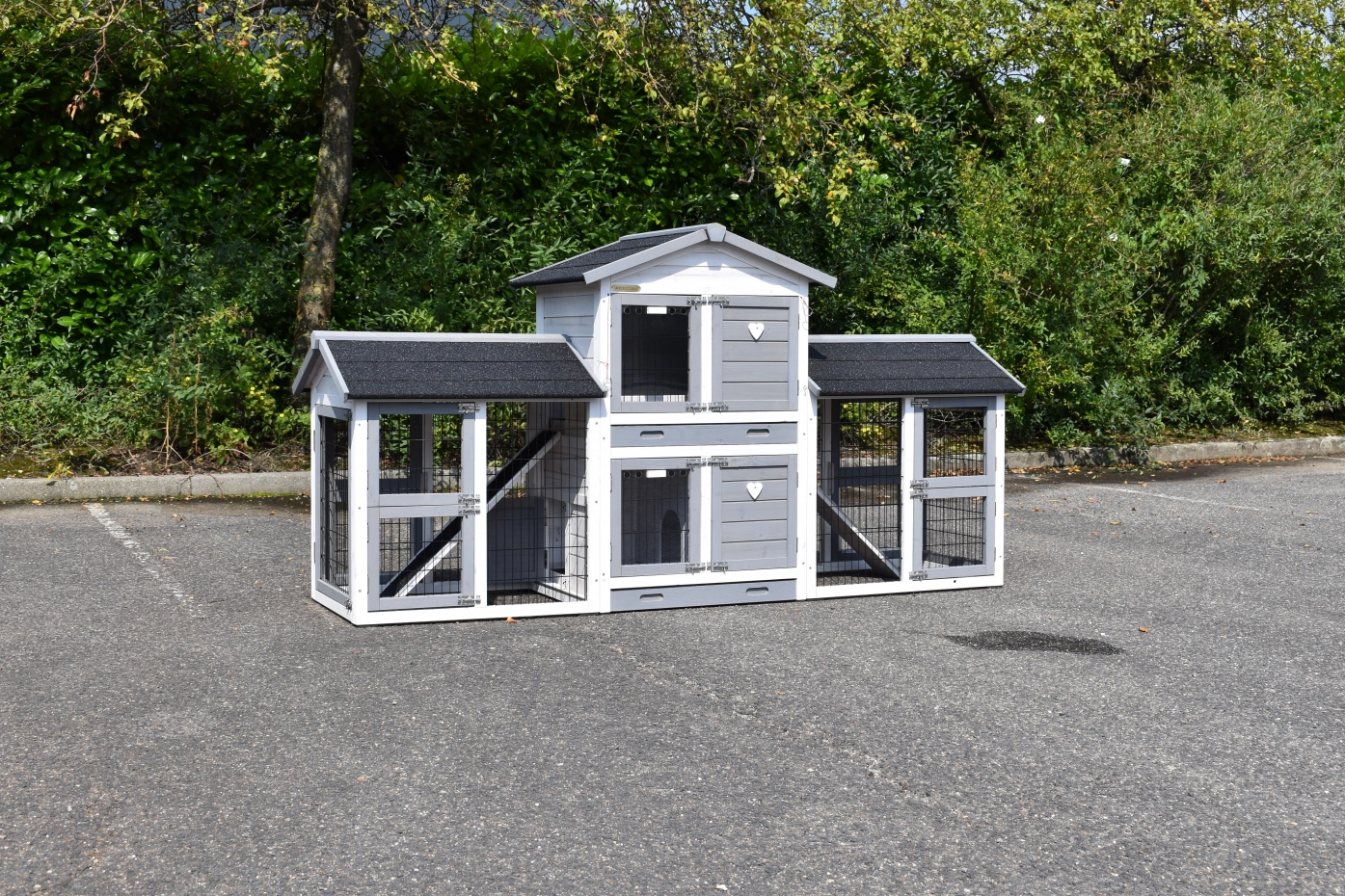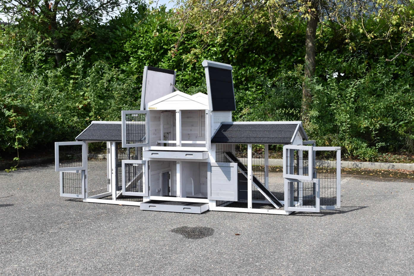 • Dit dierenverblijf is tegelijk als kippenhok en konijnenhok te gebruiken
