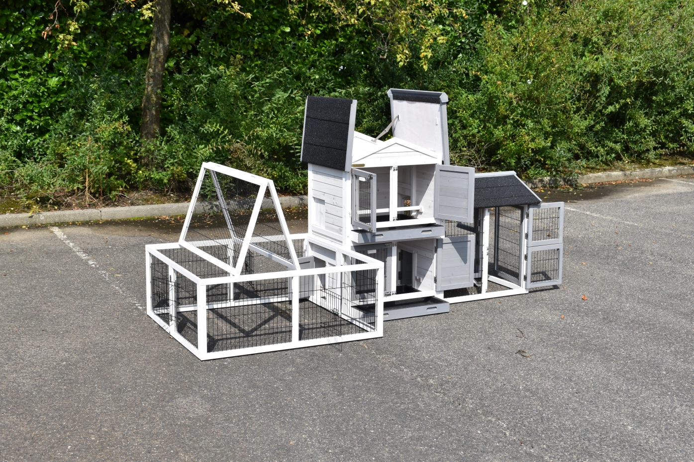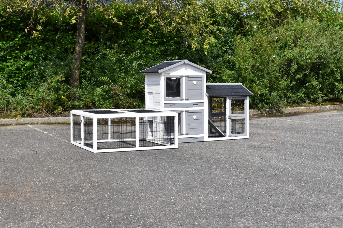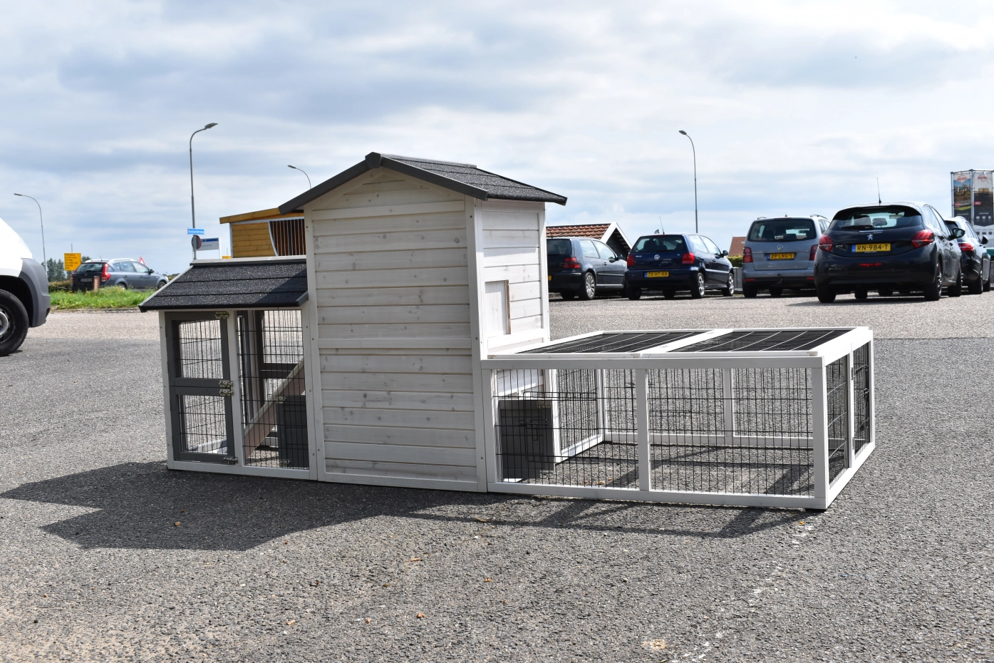 - Dit dierenverblijf is tegelijk als kippenhok en konijnenhok te gebruiken