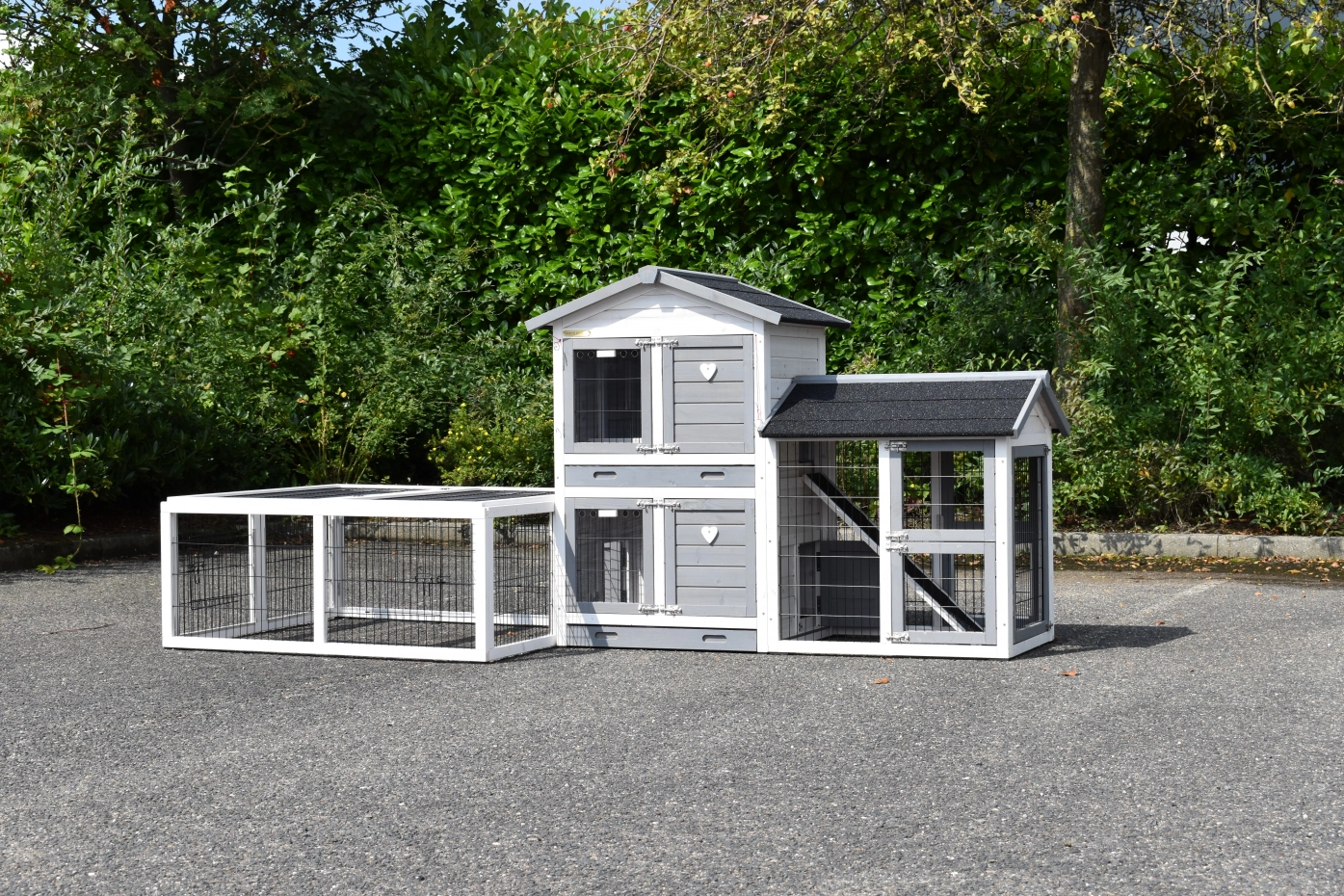 Konijnenhok Double Small met 2 rennen biedt extra veel ruimte voor uw konijnen. De Double Small is eenĀ erg mooi konijnenhok met veel deuren. Het is erg praktisch door de 2 afsluitbare nachthokken. Dit maakt het mogelijk om uw dieren gescheiden van elkaar te houden. Aanbouwren Space is een overdekte ren voor meer beschutting. De Multirun kan ook makkelijk vrijstaand gebruikt worden.