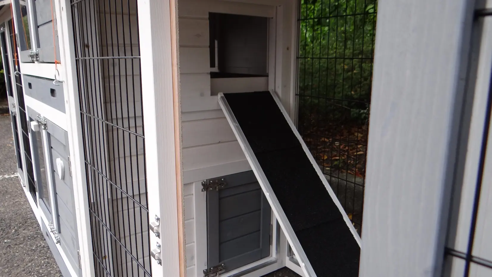 - Het hok heeft anti-knaagstrips op de meest gevoelige plekken, maar is niet volledig beschermd. Voor onbeschermde randen kunt u extra anti-knaagstrips mee bestellen.