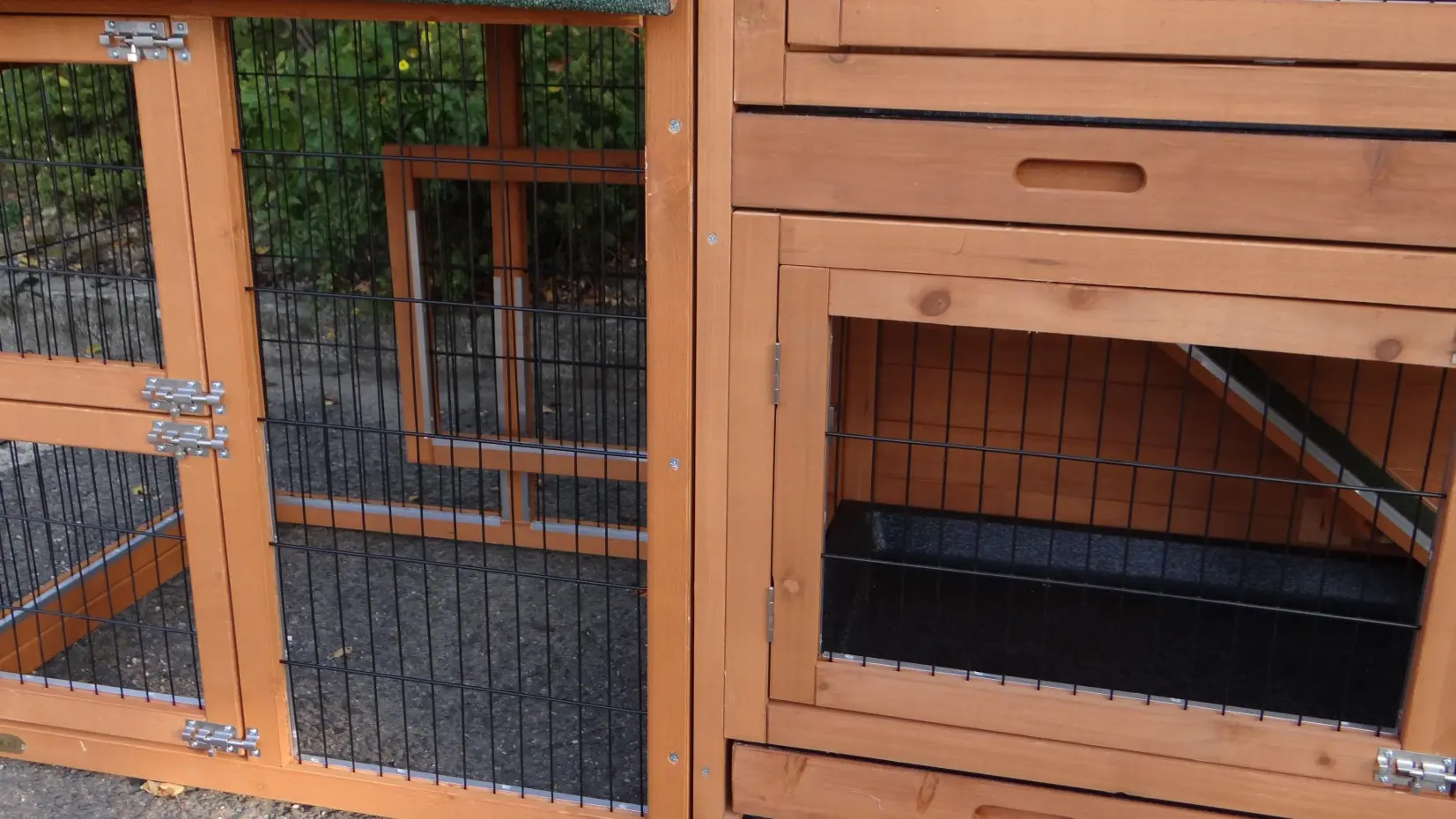- Het hok heeft anti-knaagstrips op de meest gevoelige plekken, maar is niet volledig beschermd. Voor onbeschermde randen kunt u extra anti-knaagstrips mee bestellen.