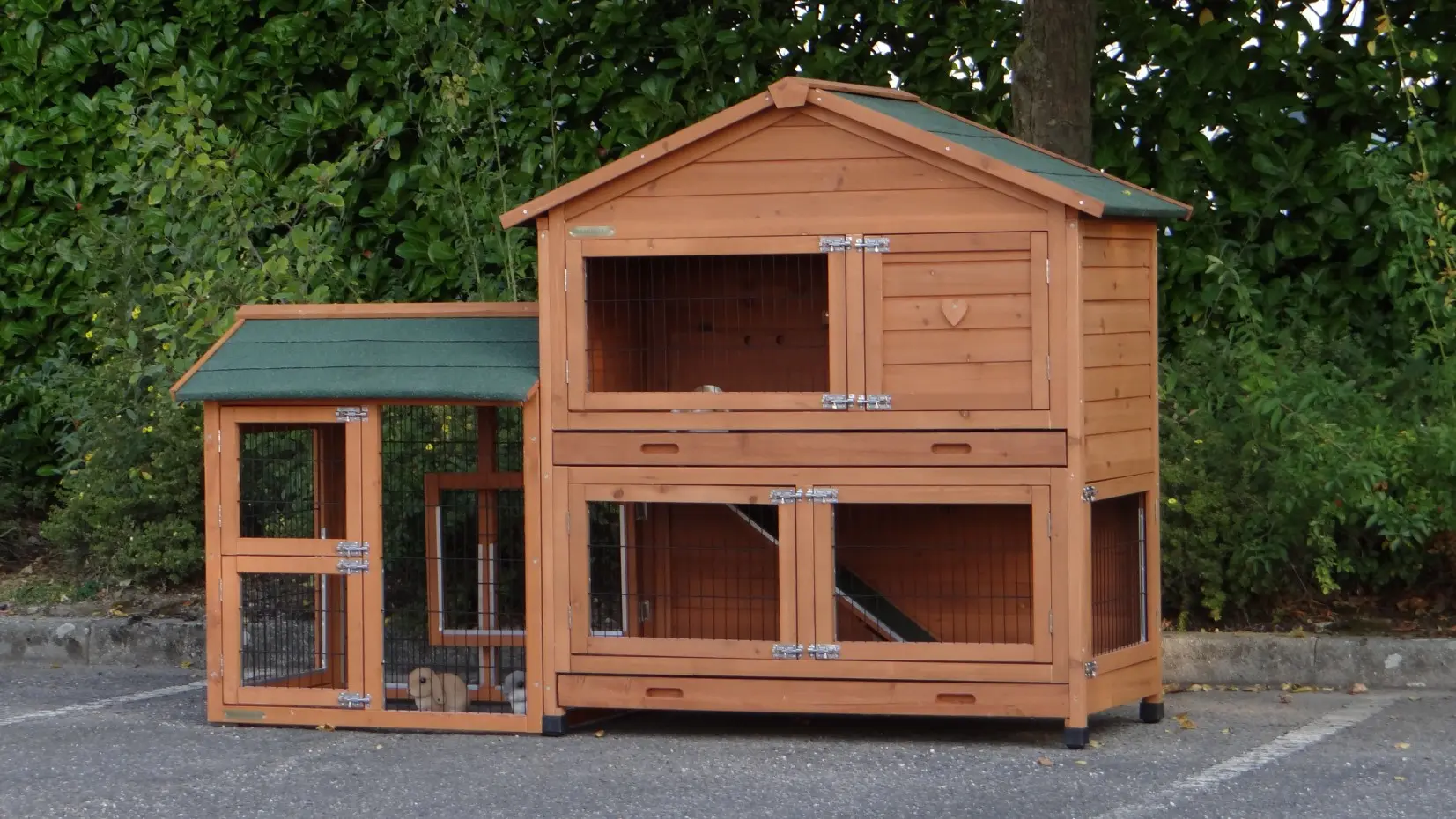 - Dit dierenhok is gemaakt van mooi dennenhout