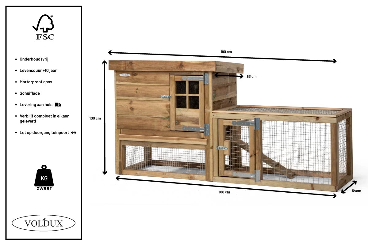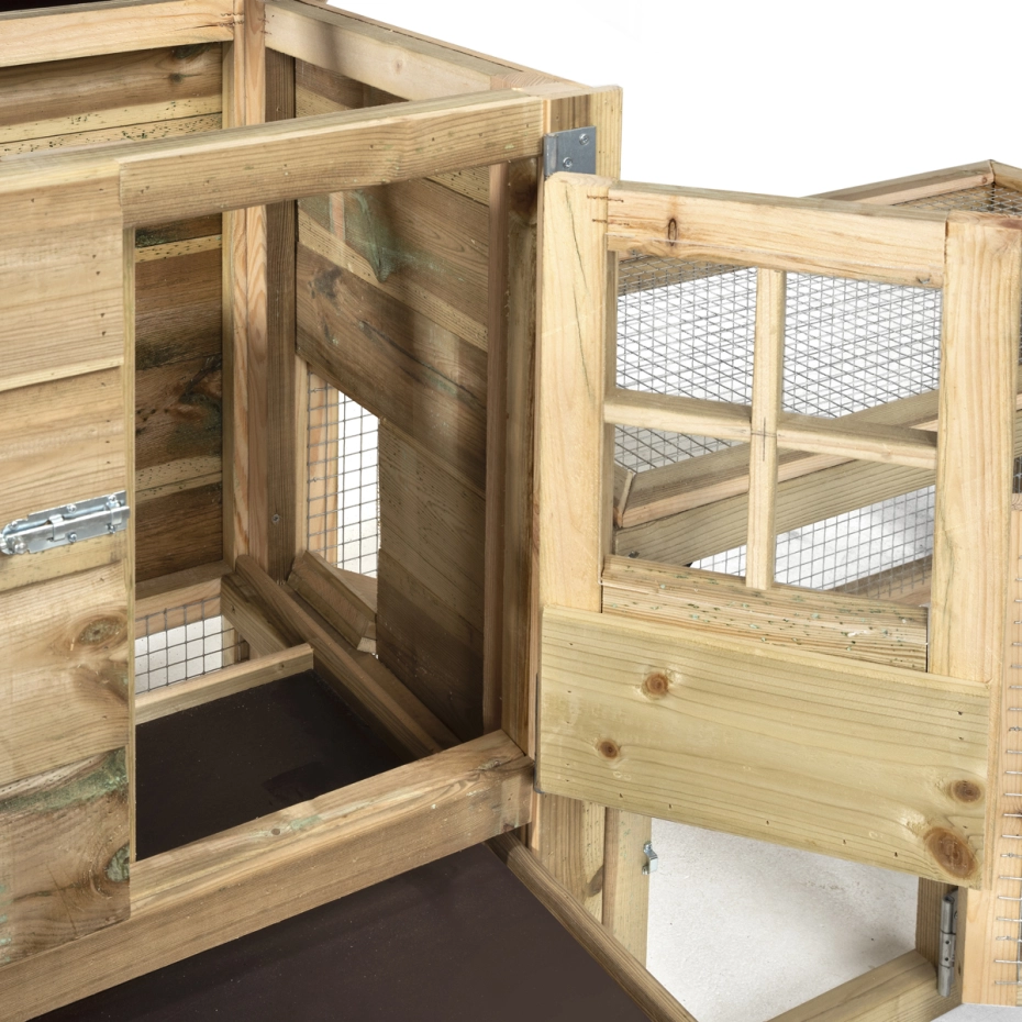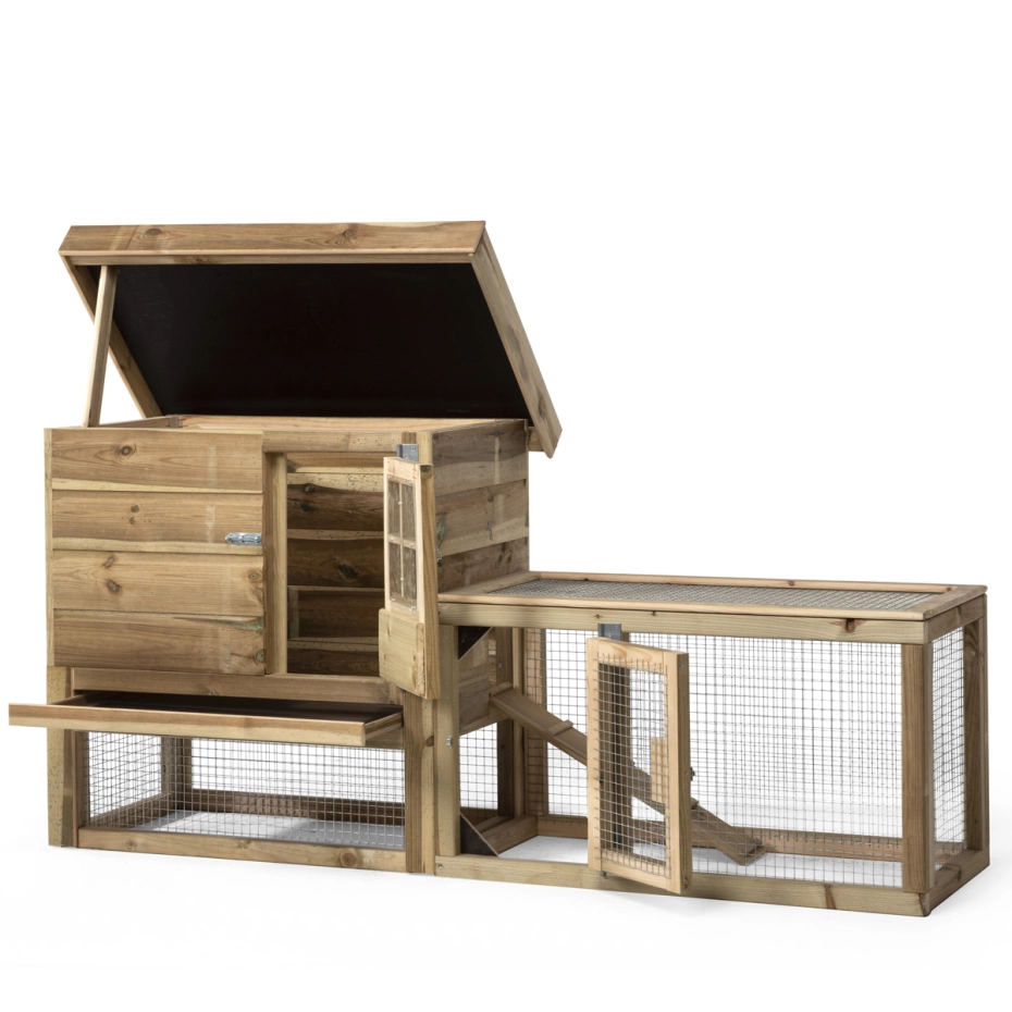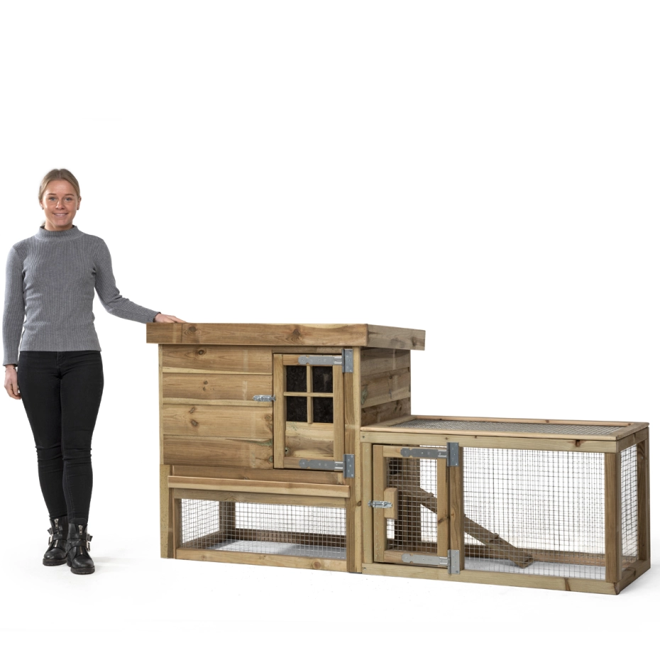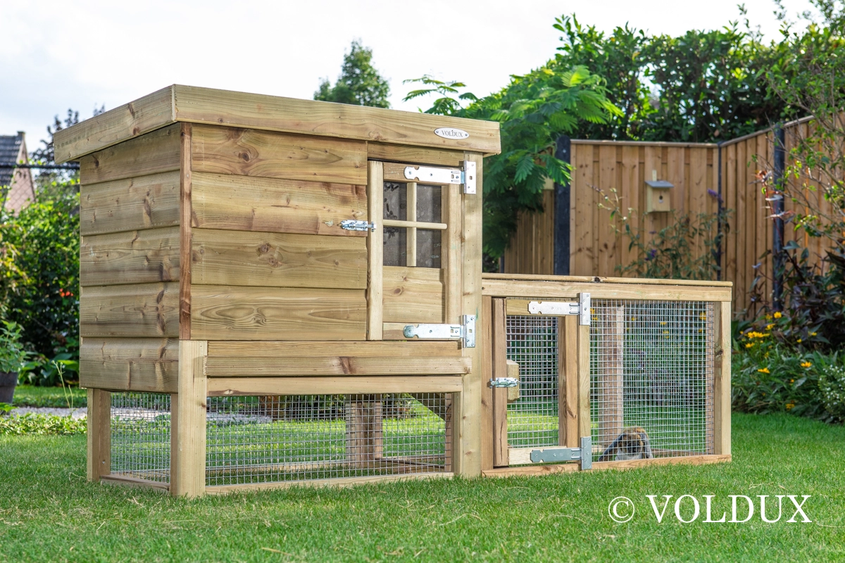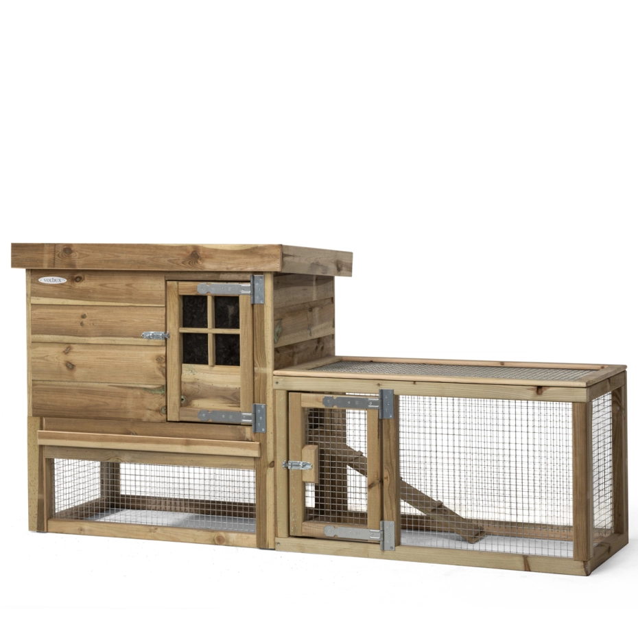 - Dierenverblijf van geïmpregneerd grenen hout, dat maakt het hok onderhoudsvrij en zorgt voor een lange levensduur