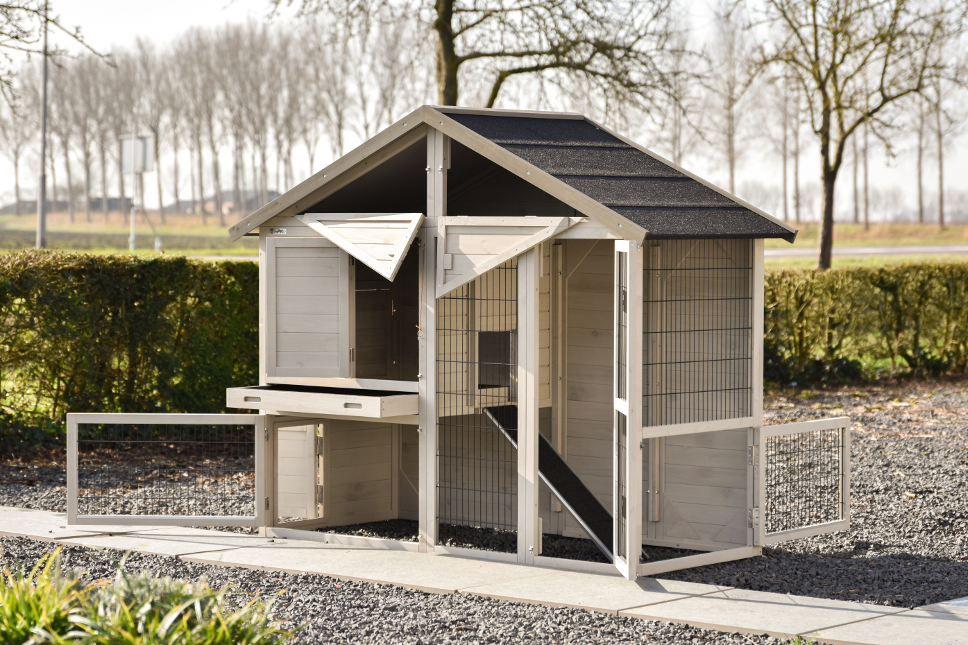- Het hok is eenvoudig uit te breiden met aanbouwren(nen)
