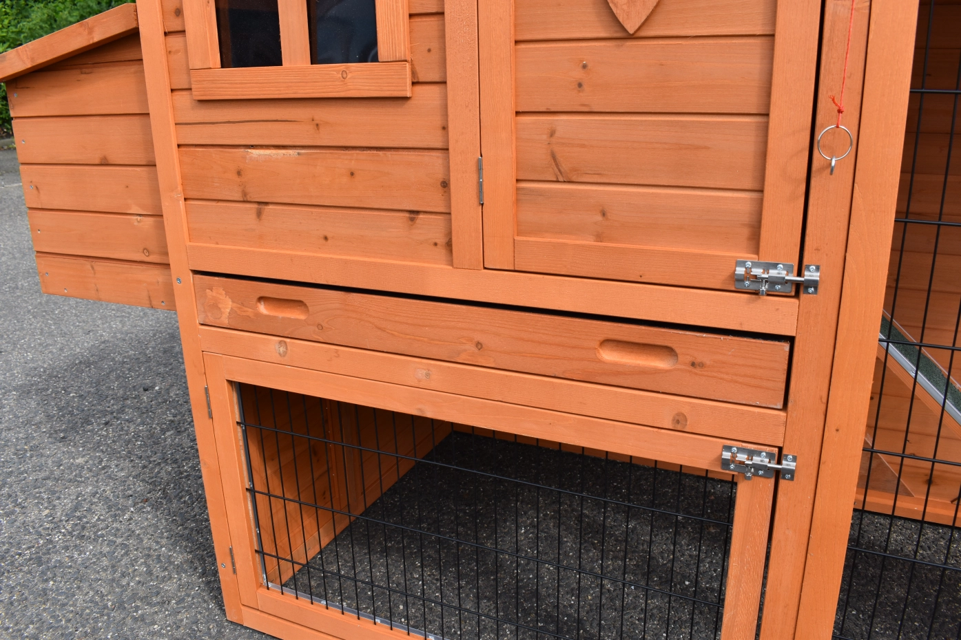 - Het hok heeft anti-knaagstrips op de meest gevoelige plekken, maar is niet volledig beschermd. Voor onbeschermde randen kunt u extra anti-knaagstrips mee bestellen.