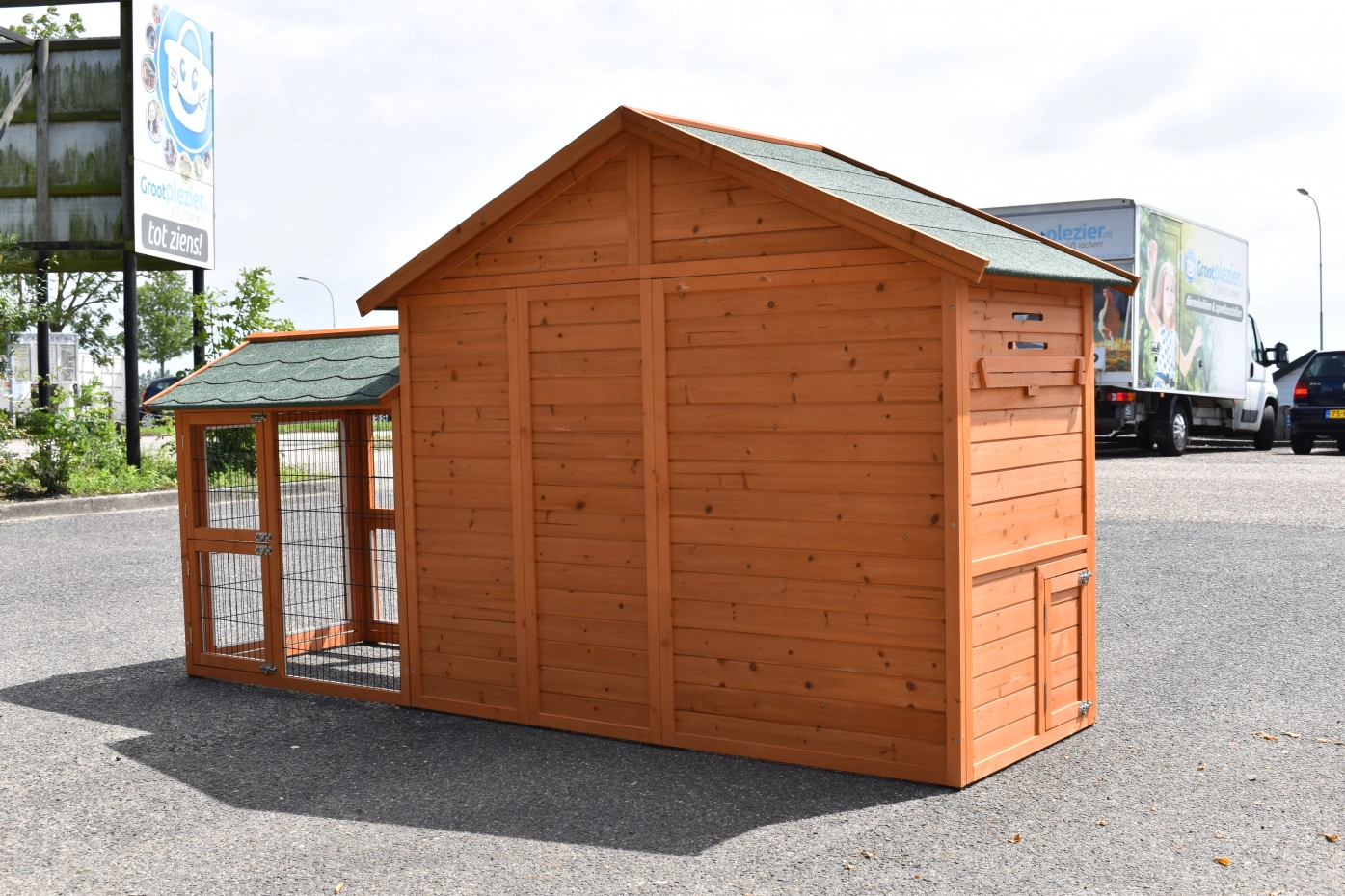 - Dit dierenhok is gemaakt van mooi dennenhout