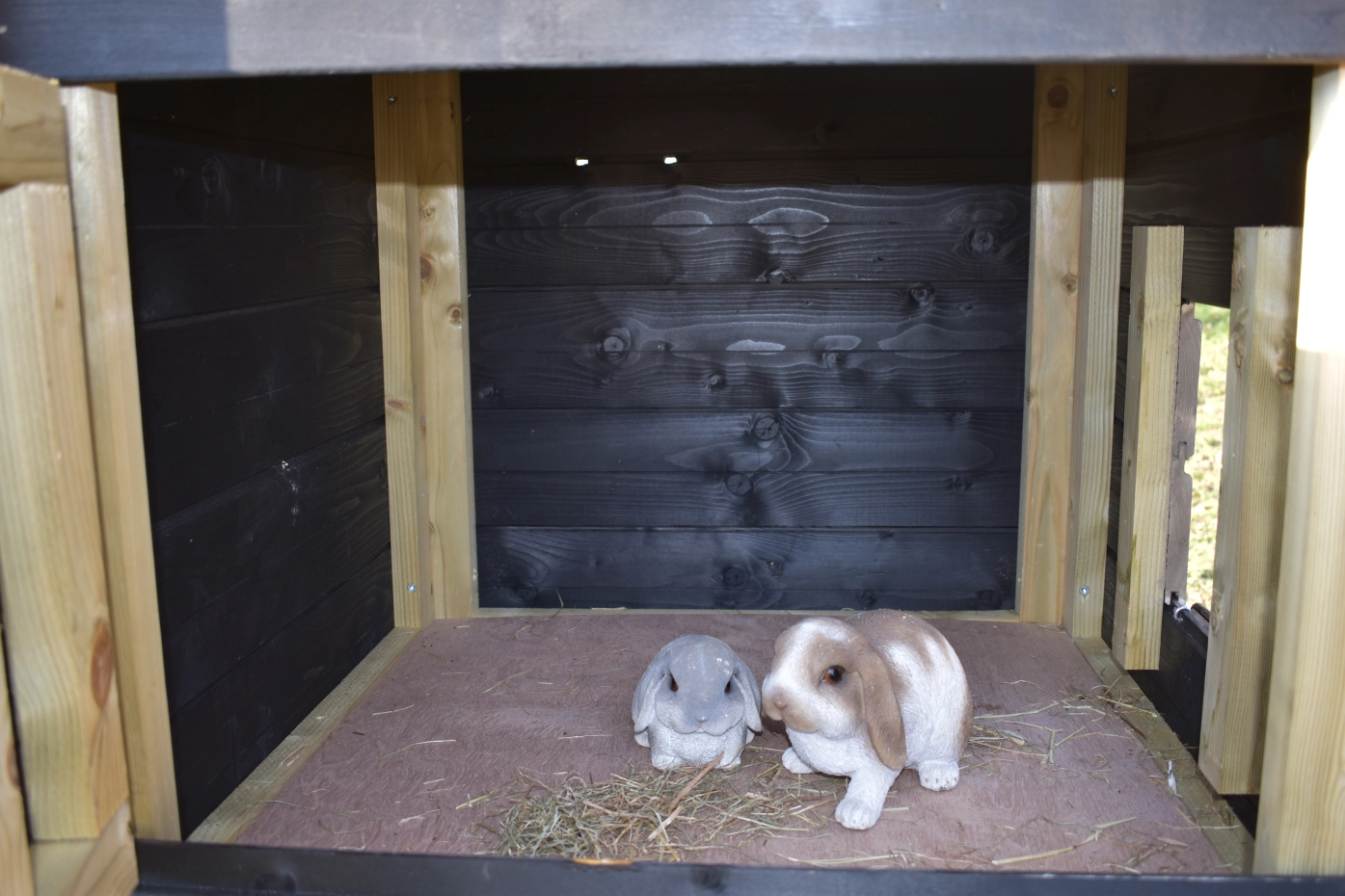 - Het konijnenhok is voorzien van zwart kunststof voetjes, waardoor het eenvoudiger verplaatst kan worden en de poten beschermd zijn tegen vocht