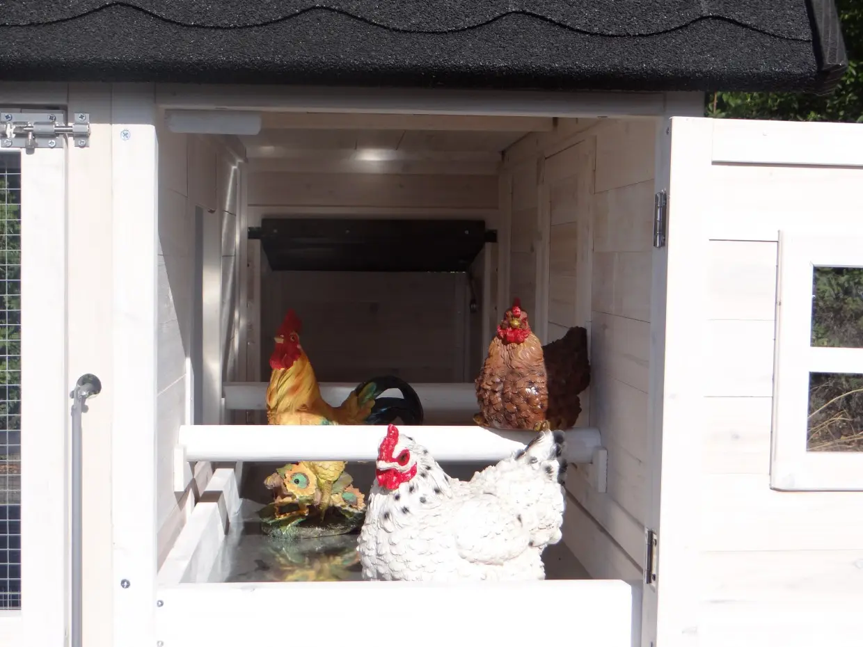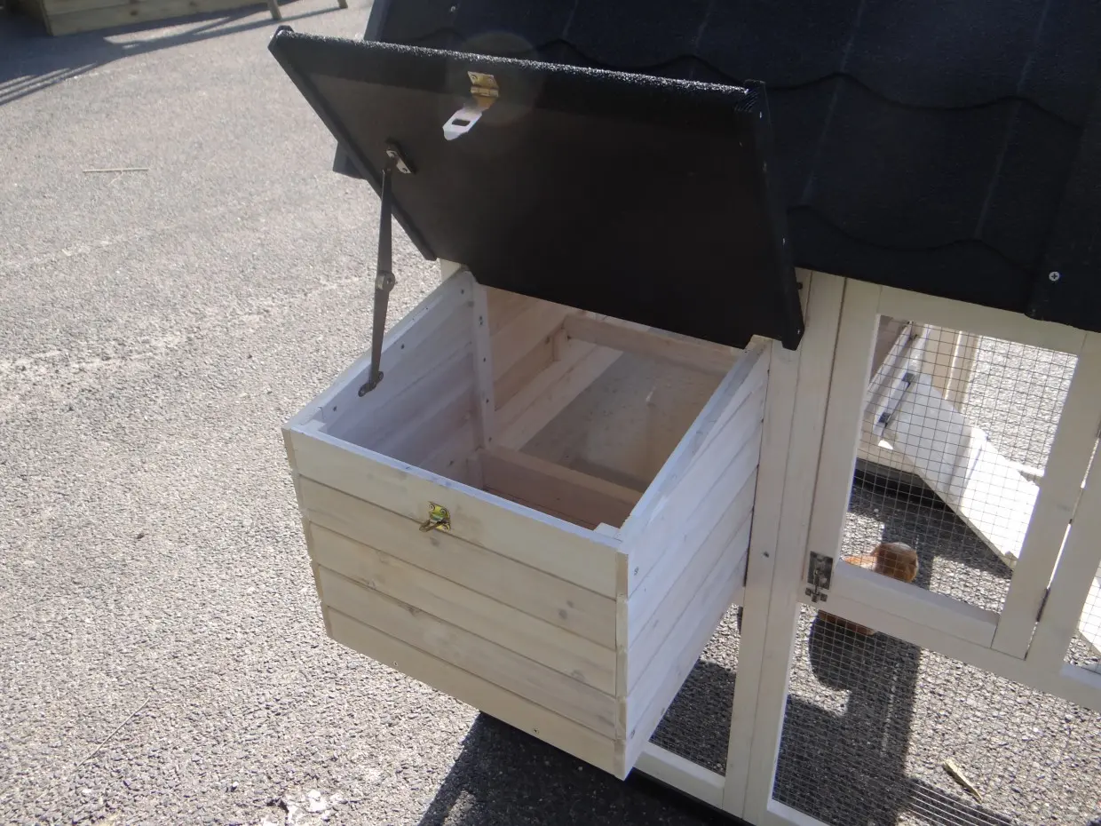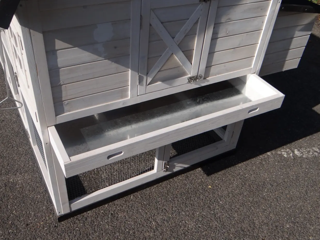 - Metalen schuiflade (zink) om het hok handig schoon te maken