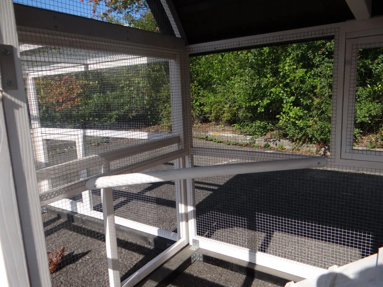 - Het hok heeft een dak met dakleer
