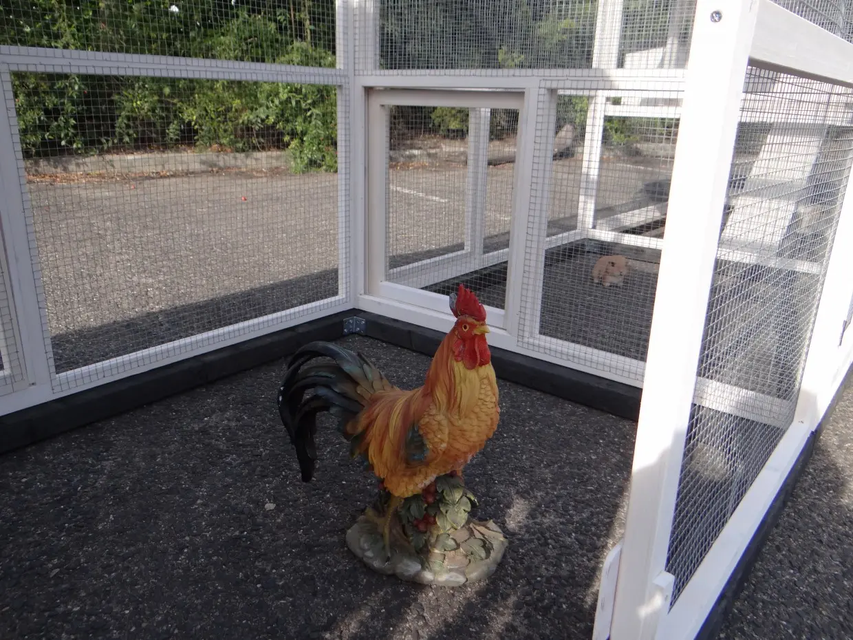 - De aanbouwren heeft een dak van gaas (ca. 12x12mm).
