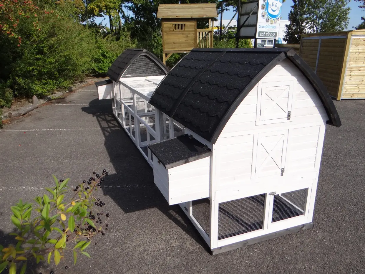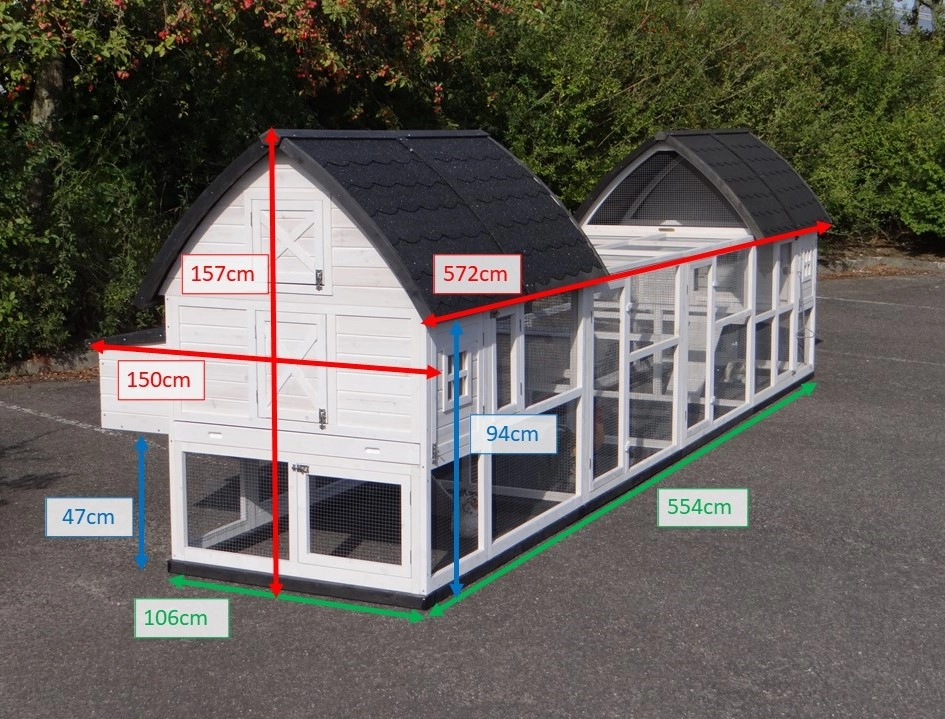 | Buitenwerkse afmeting nachthok incl. dak en nestkast (BxDxH) | 572x150x157cm |