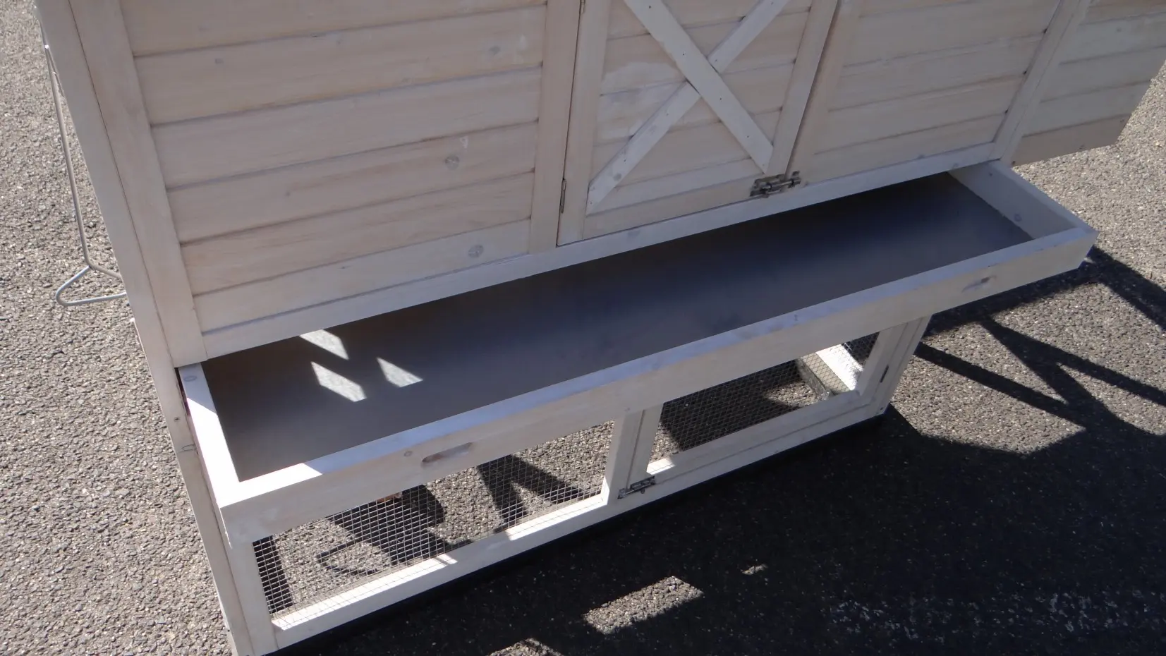 - Metalen schuiflade (zink) om het hok handig schoon te maken